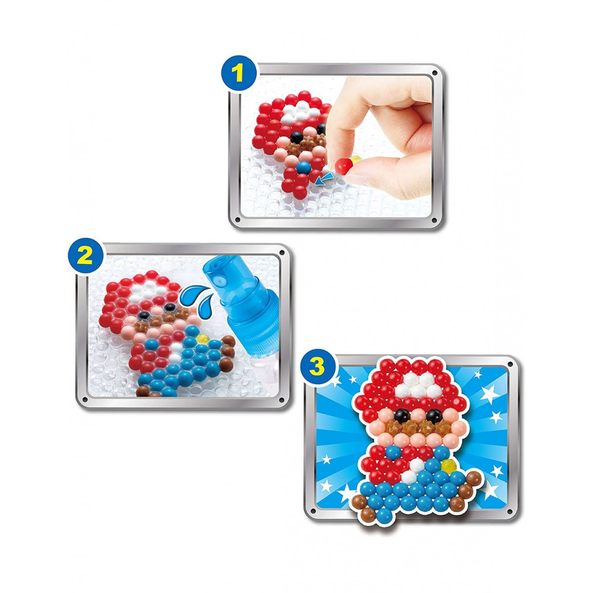 Solo tiene que seguir el diseño de la plantilla y colocar los abalorios en la bandeja. COn ayuda del bote de spray rocía agua sobre el diseño para se queden pegados y déjalo secar. Las plantillas incluyen 6 personajes de la saga Super Mario: Mario, Luigi, la Princesa Peach, Bowser, Goomba, y Koopa Troopa.