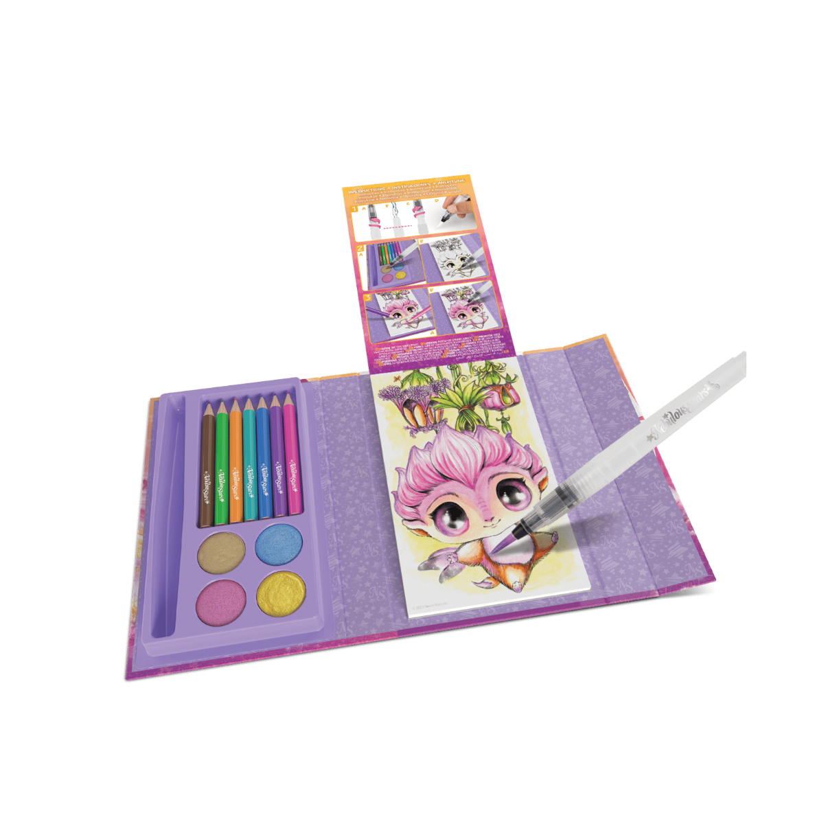 - Incluye: Un pincel recargable, 7 lápices de acuarela, 4 colores de pintura y 16 ilustraciones.