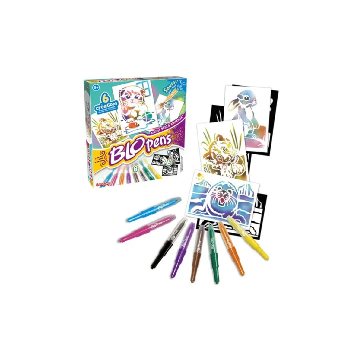 Este set Blopens de Bebés Animales ofrece una forma divertida y diferente de pintar: basta colocar una plantilla, soplar dentro del bolígrafo especial y ver cómo el dibujo cobra vida con un efecto aerógrafo vibrante. Los peques pueden recrear imágenes tiernas de animales bebés (como un leoncito, un conejo, un panda rojo o una adorable foca glaciar) de forma rápida, limpia y sin necesidad de complicados pinceles o pinturas.