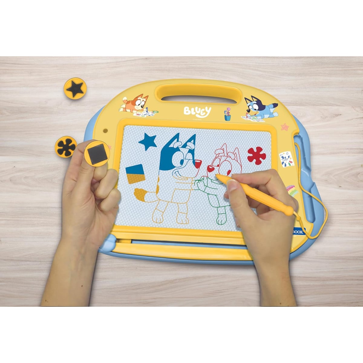 Pizarra mágica Bluey A5 con lápiz y sellos. Dibujar, borrar y volver a crear sin parar de forma divertida y sin ensuciar.