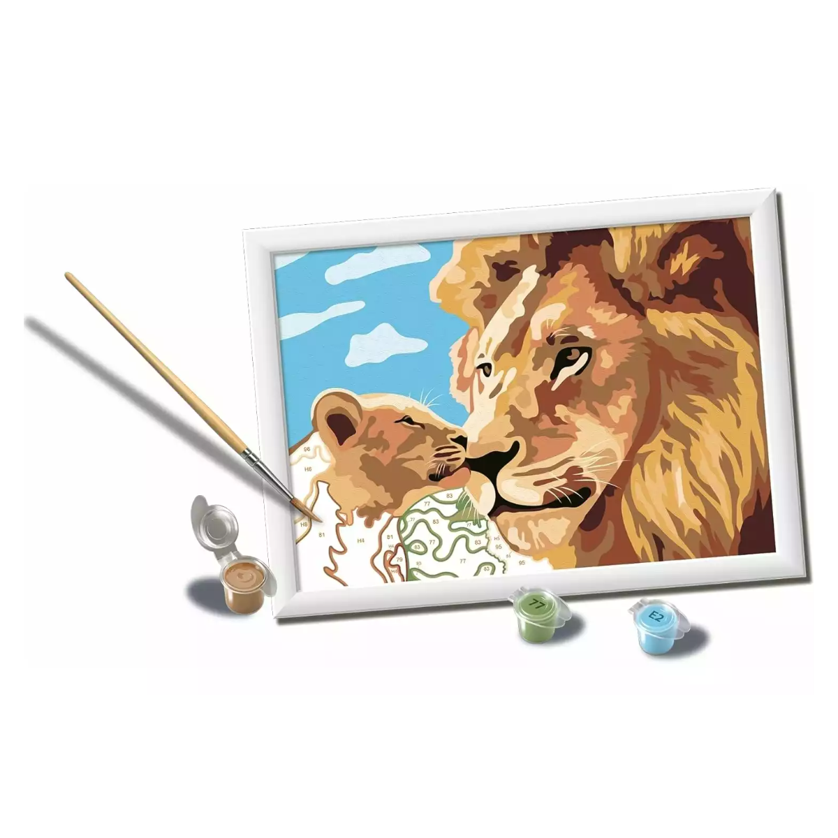 - Incluye lienzo con diseño de león y cachorro.