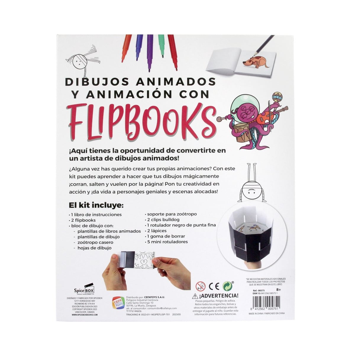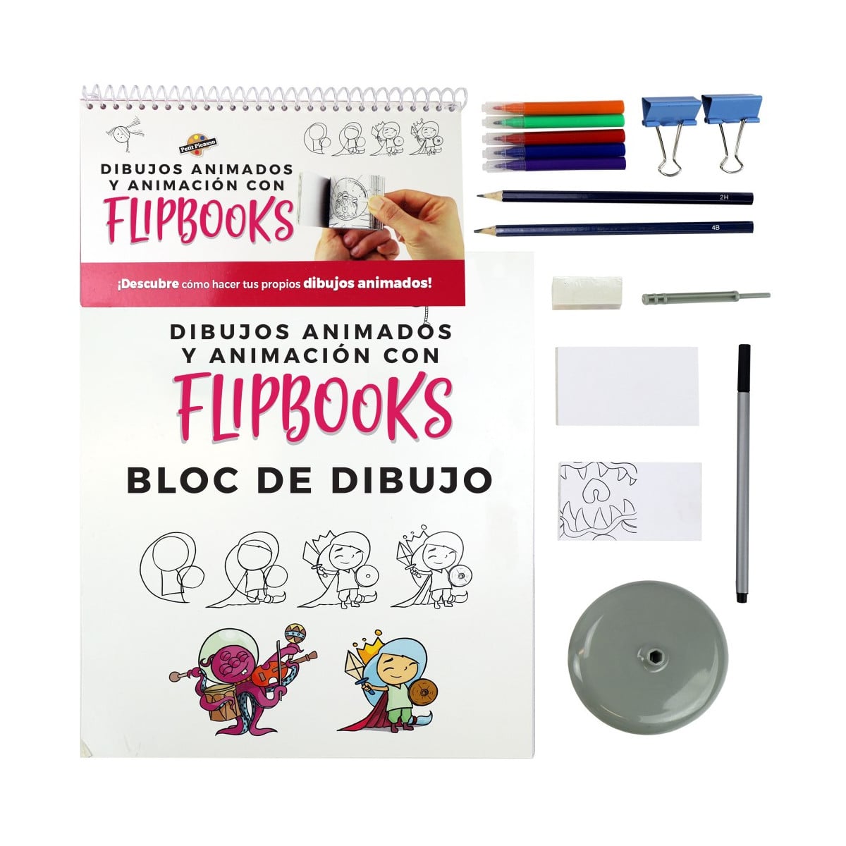 - Contenido: mini rotuladores, plantillas de dibujos, zoótropo casero, soporte, clips, goma de borrar, lápices y rotulador negro.