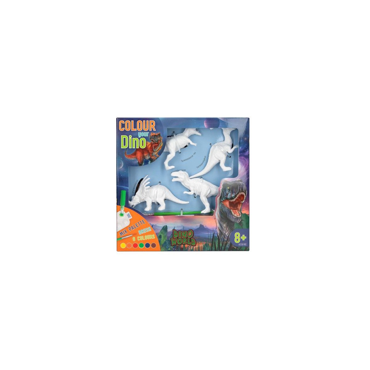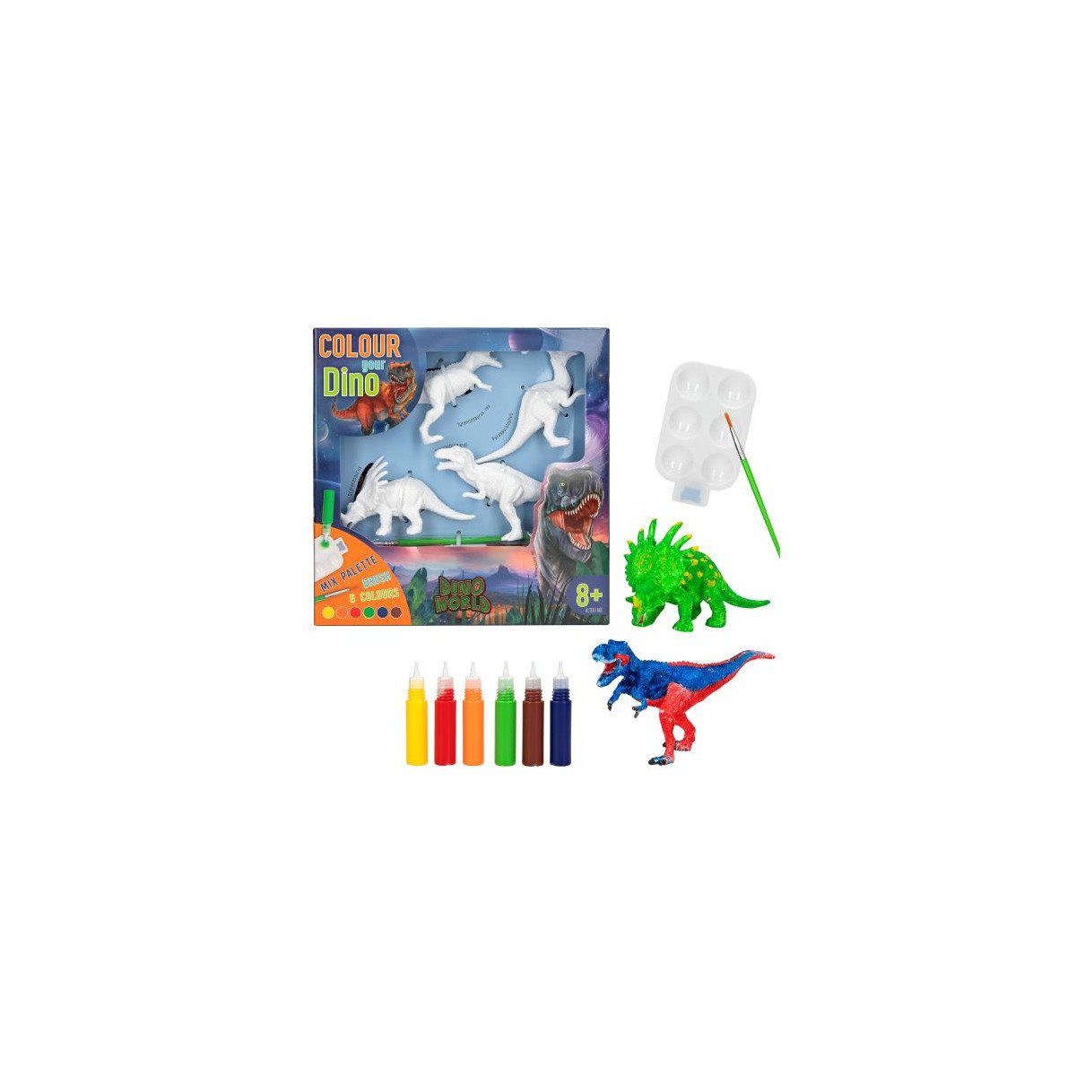 Set creativo para pintar tu propio dinosaurio de Dino World. Incluye figura blanca, pinturas acrílicas y pincel. Perfecto para peques amantes de los dinosaurios.