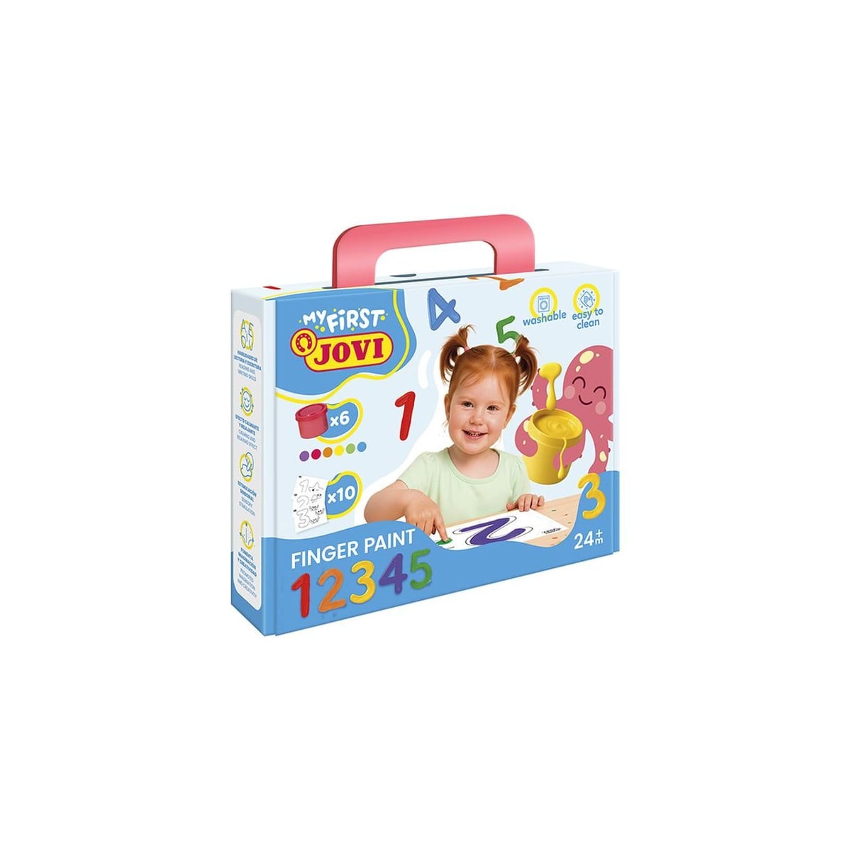 Maletín Jovi My First con pintura de dedos y plantillas para aprender los números. Incluye 6 botes de colores y 10 láminas didácticas para pintar y experimentar.