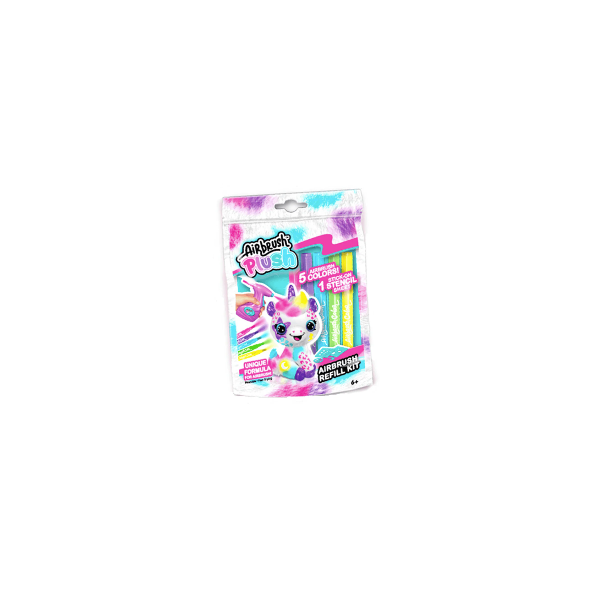 Kit de Recarga Airbrush Plush con 5 rotuladores lavables y plantillas adhesivas. Ideal para crear y rediseñar tu unicornio con diversión infinita.