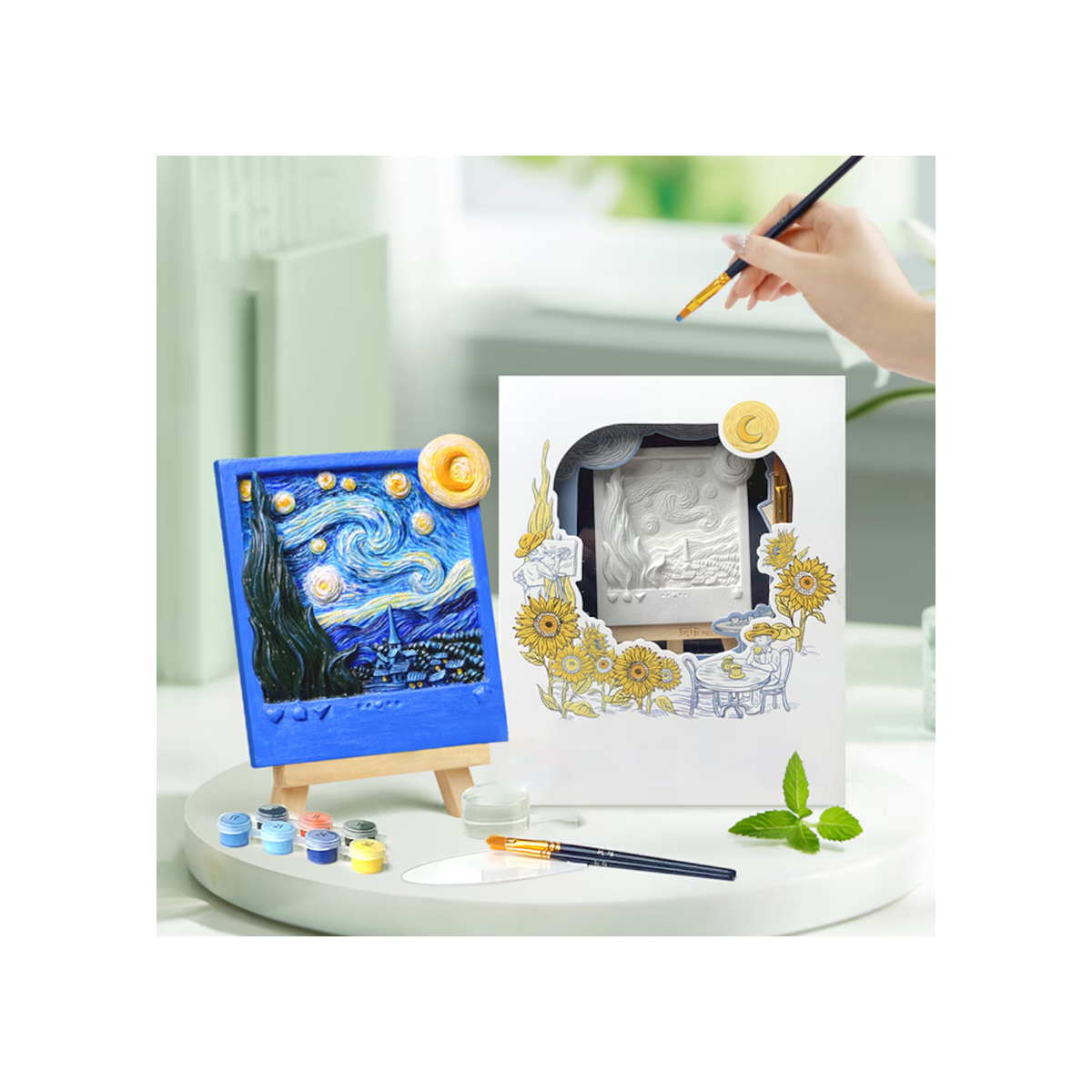 Descubre la Pintura En Relieve La Noche Estrellada De Van Gogh, incluye todo lo necesario para crear un cuadro con volumen y textura, ideal como manualidad creativa y decorativa.