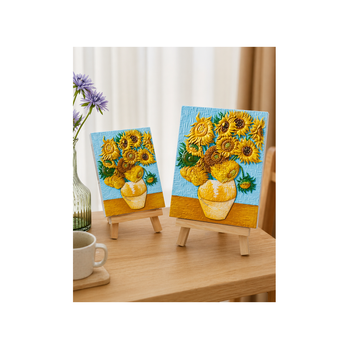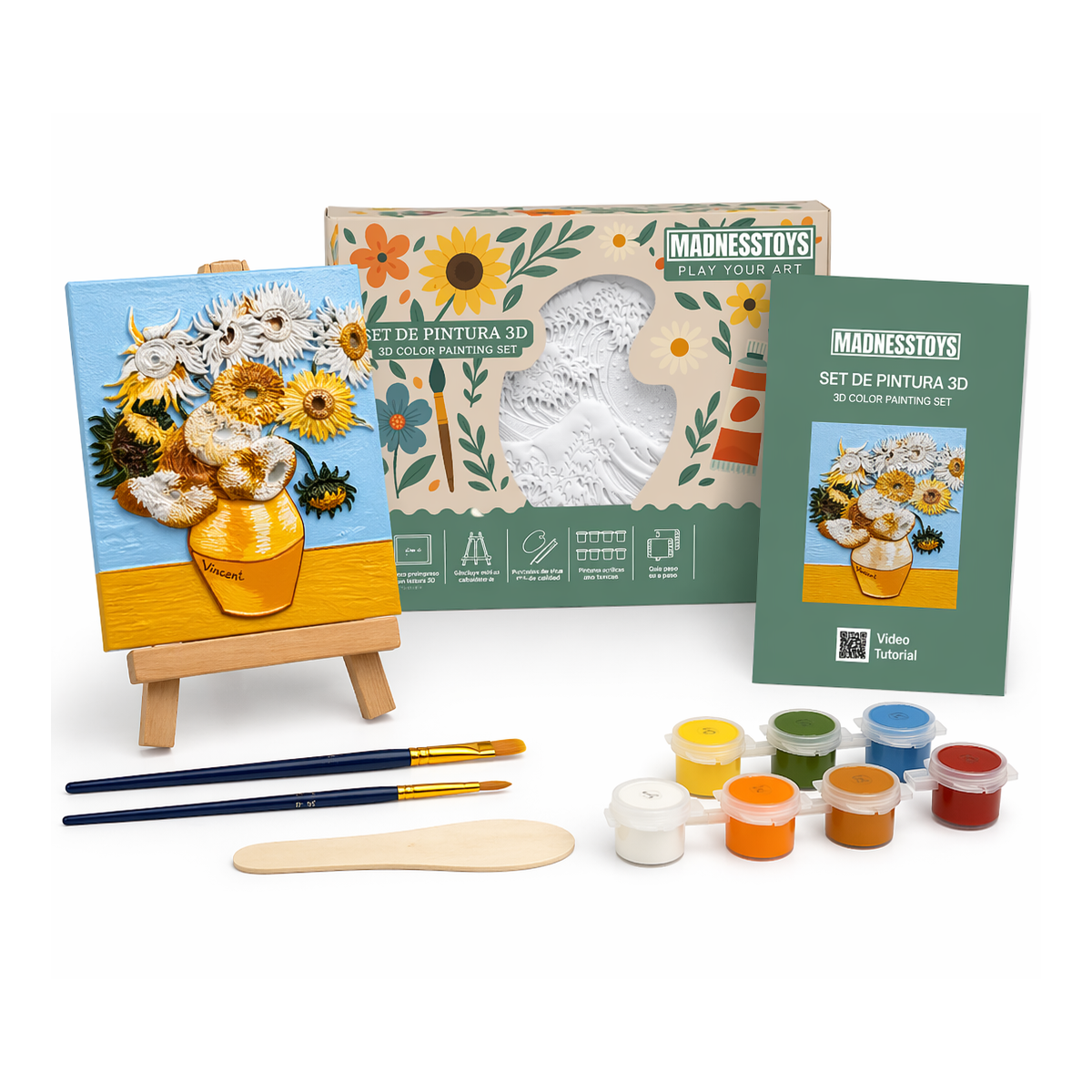 Descubre la Pintura En Relieve Los Girasoles De Van Gogh, que incluye todo lo necesario para crear un cuadro con relieve y textura. Una actividad creativa y relajante ideal para disfrutar pintando y decorar cualquier espacio con un resultado original.