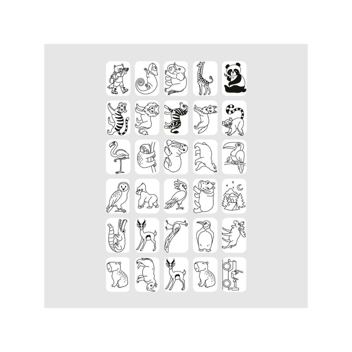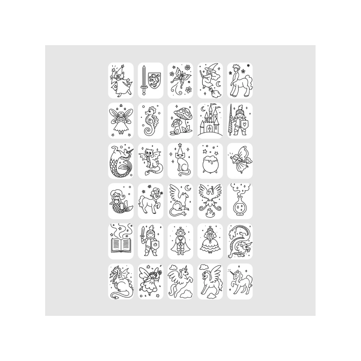 Este pack incluye una colección de láminas reutilizables con ilustraciones de temática Érase una vez y Animales, ideales para calcar fácilmente sobre la pantalla de la pizarra (no incluida). Solo hay que colocar la plantilla en la KIDYDRAW-MINI… y empezar a crear. Podrán dibujar castillos, personajes mágicos, animales adorables y escenas llenas de aventura, repitiendo los diseños tantas veces como quieran.