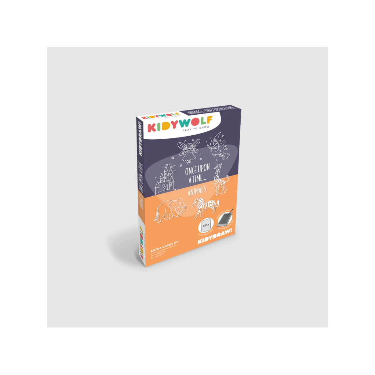 Amplía el universo creativo de la pizarra KIDYDRAW-MINI con las plantillas Once Upon a Time y Animales de Kidywolf. Un set pensado para niños y niñas que disfrutan imaginando historias, dibujando personajes y dando forma a su propio mundo lleno de fantasía.