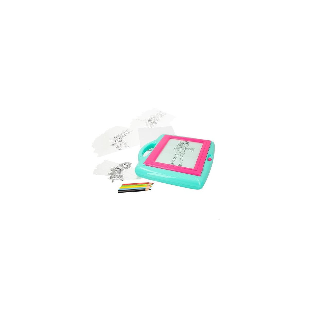 - Incluye pizarra con luz, transparencias, 5 lápices de colores y plantillas, todo dentro de un práctico maletín.
