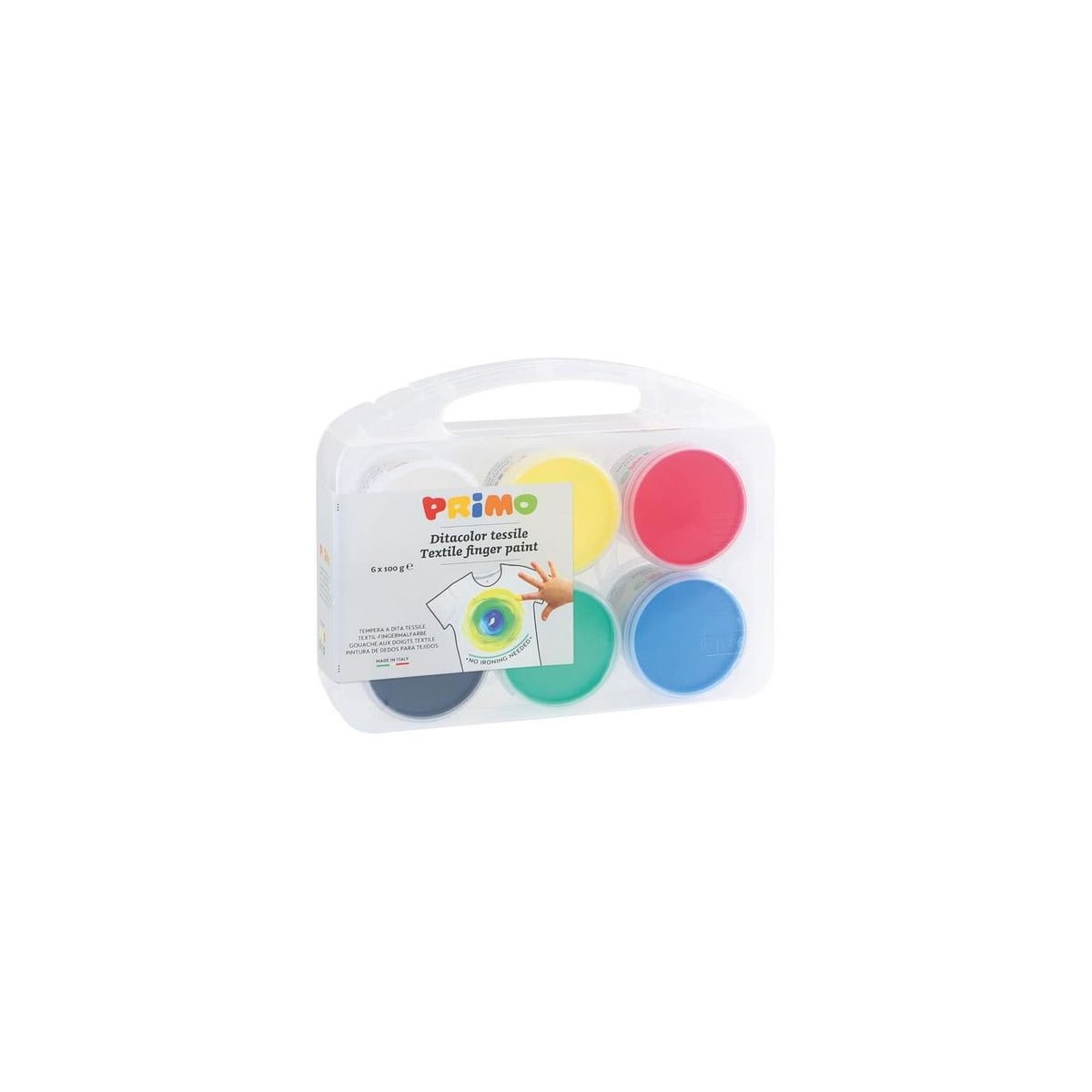 Es una pintura especialmente diseñada para aplicar sobre textiles, su fórmula está diseñada para ser aplicada directamente con los dedos sobre telas. El set viene en un práctico estuche que puedes usar para almacenar los colores.