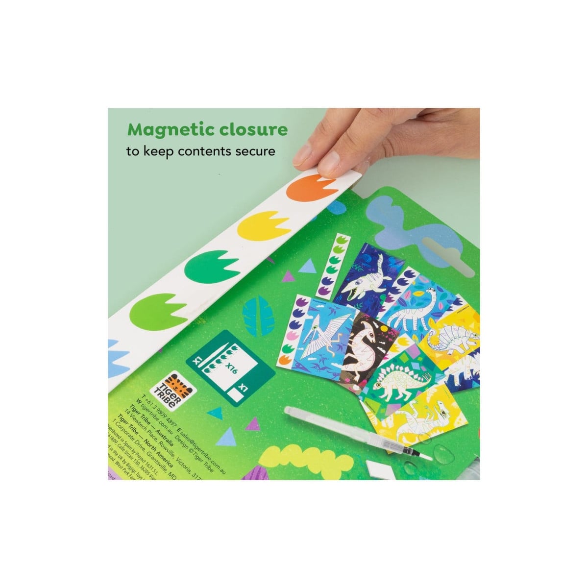 Este completo set de pintura de dinosaurios de Tiger Tribe es una opción perfecta para que los peques den rienda suelta a su creatividad de forma cómoda y sin complicaciones. Se trata de un kit innovador tipo Paint-a-Picture, en el que cada página incluye sus propios pigmentos de acuarela, evitando así el uso de botes de pintura adicionales y reduciendo el desorden.
