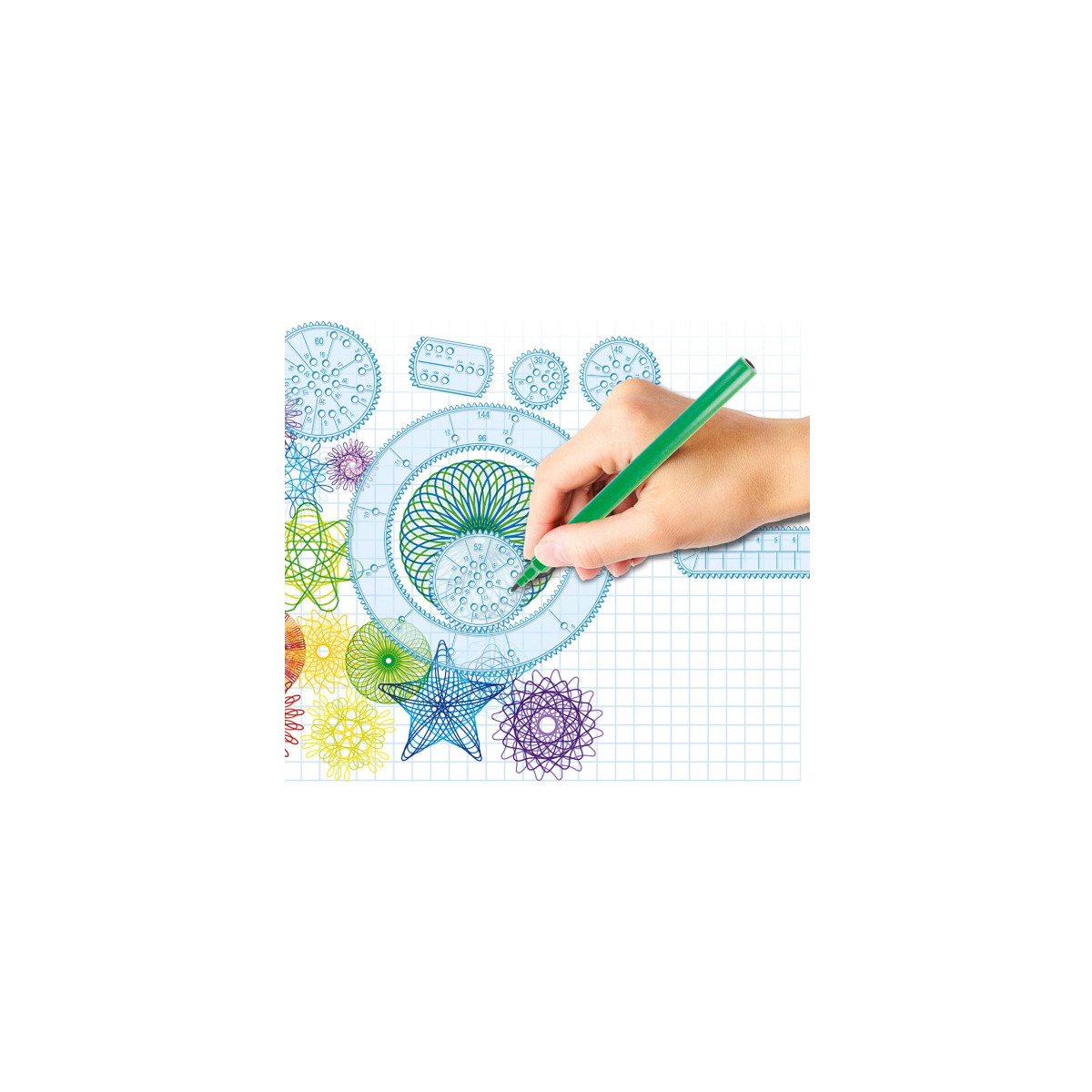 Gracias a su sistema de plantillas y ruedas dentadas, Spirograph convierte cualquier dibujo en una experiencia artística. Solo hay que colocar la plantilla sobre el papel, encajar una de las ruedas y moverla suavemente con un bolígrafo o rotulador. El resultado son patrones espectaculares que parecen sacados de un caleidoscopio, ¡y cada uno es diferente!