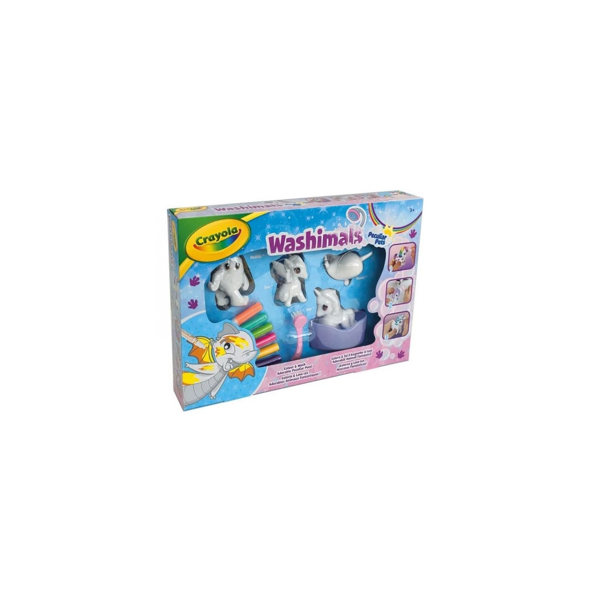 Este set es una excelente manera de combinar diversión, creatividad y cuidado. Los niños y niñas pueden expresar su estilo único mientras aprenden sobre la importancia del mantenimiento de sus juguetes. ¡Haz que la imaginación de tus pequeños vuele con el Washimals Set Animalitos Fantásticos!