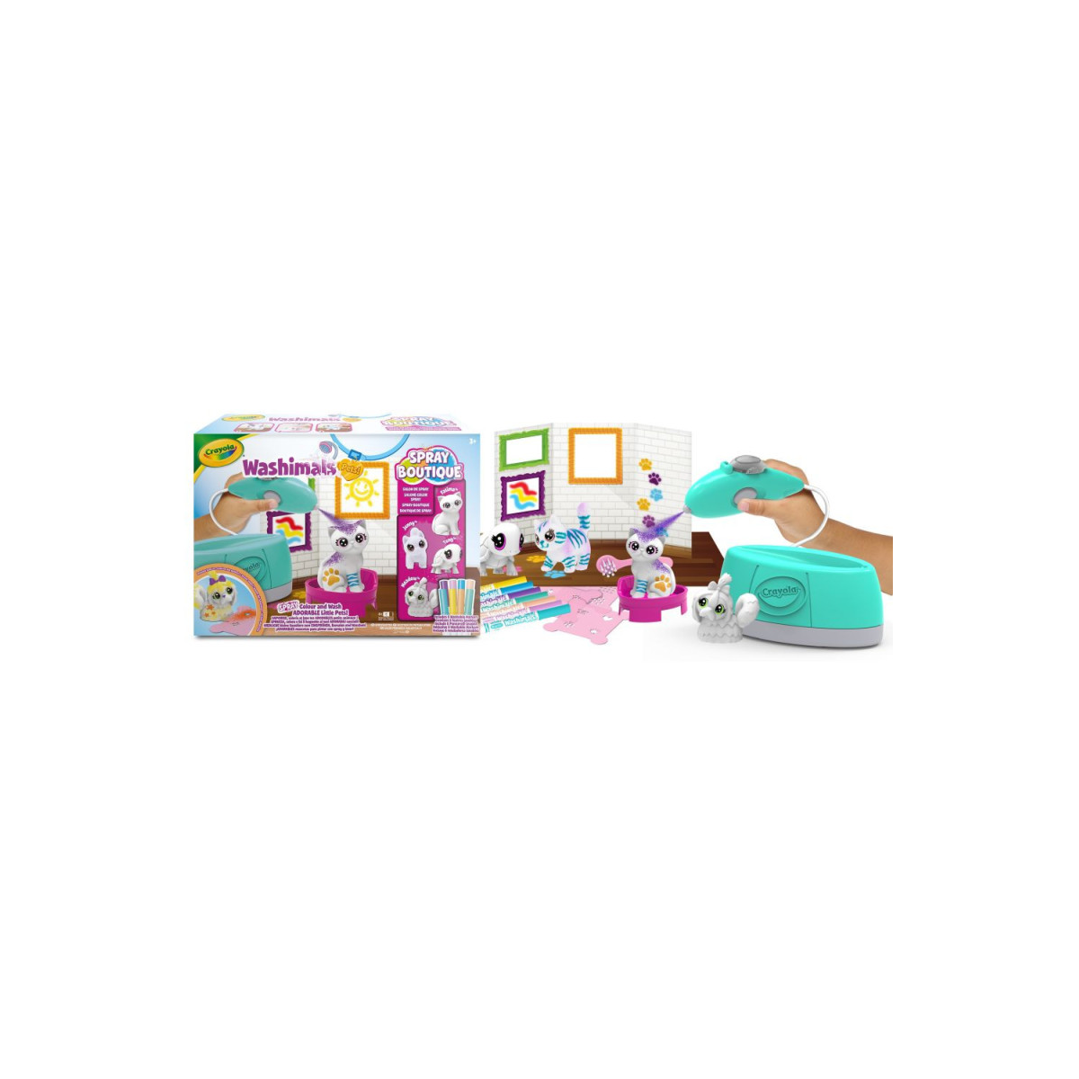 Descubre la magia de la creatividad con el set Washimals Pets Boutique Spray de Crayola, un juego ideal para los pequeños amantes de los animales y el arte. Este set es perfecto para niños y niñas que disfrutan colorear, lavar y rediseñar sus propios amiguitos de peluche. Incluye adorables mascotas lavables que pueden ser decoradas una y otra vez, permitiendo que los más pequeños den rienda suelta a su imaginación sin límites. Además, es una actividad que fomenta la paciencia y la coordinación, ya que los niños tendrán que decorar cada mascota con esmero y luego utilizar el spray para lavar y empezar de nuevo.