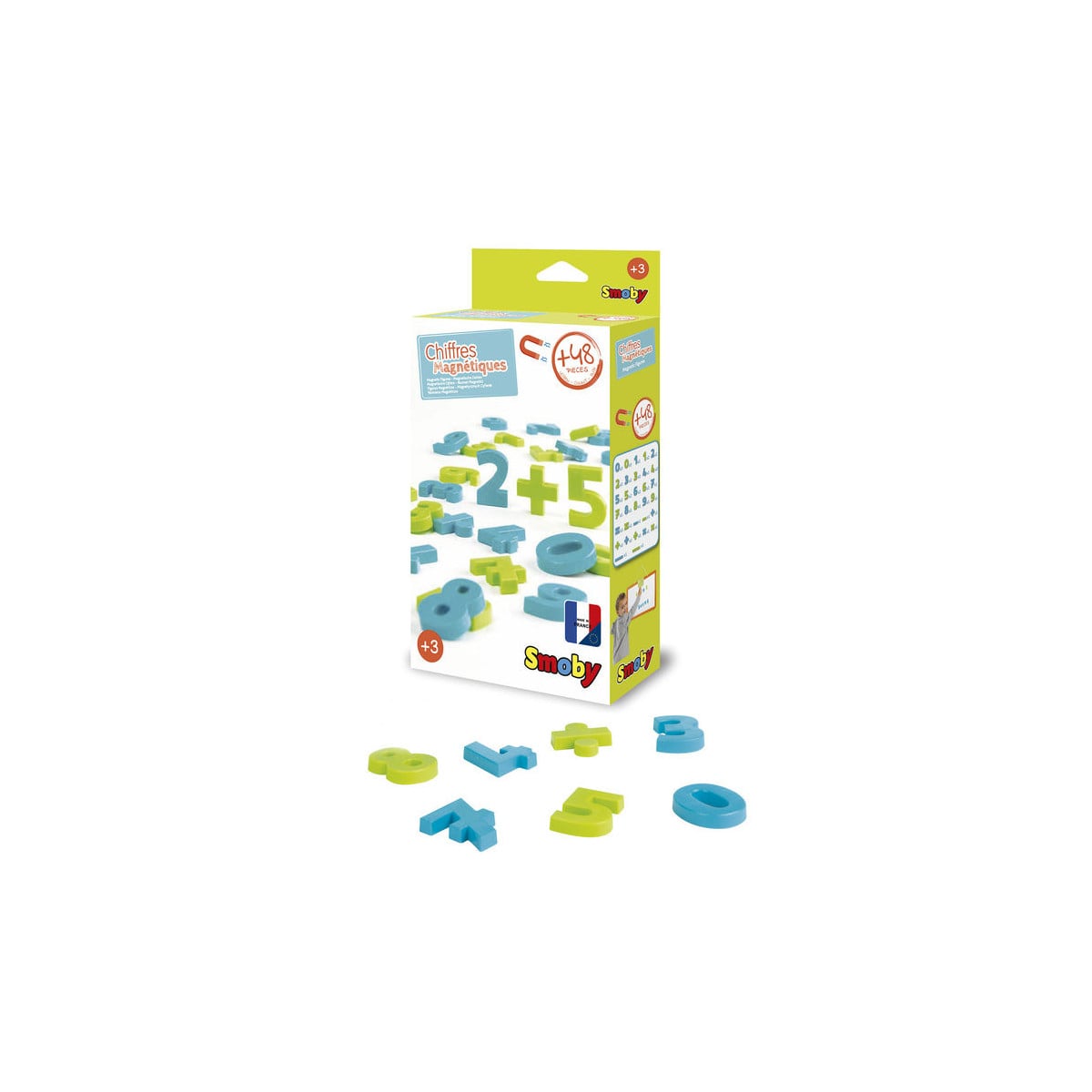 Juego de 48 números magnéticos de color azul y verde.
