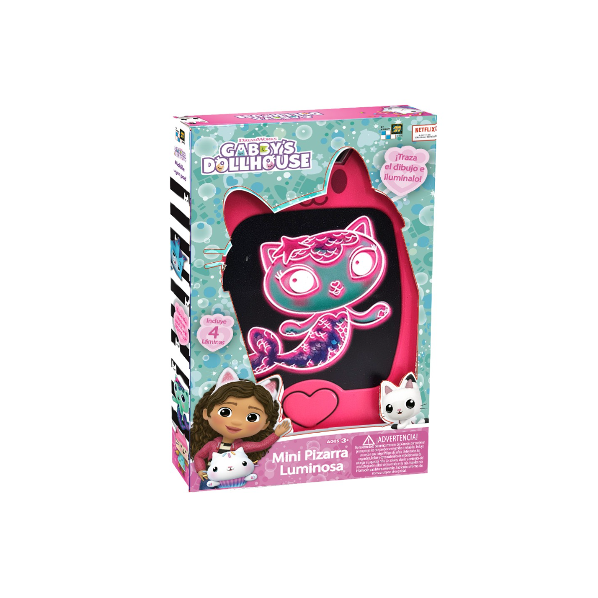 Mini Pizarra Luminosa La Casa De Gabby con plantillas y rotuladores para dibujar y borrar. ¡Ideal para fomentar la creatividad desde los 3 años!