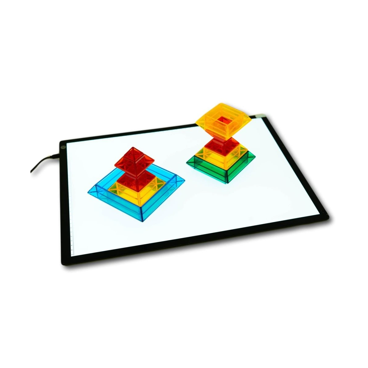 Gracias a su tamaño A3, ofrece una amplia área de trabajo, ideal tanto para uso individual como para compartir actividades en casa o en el aula. Es perfecta para combinar con letras, números, discos o gemas translúcidas, potenciando el reconocimiento visual, la atención y la motricidad fina.
