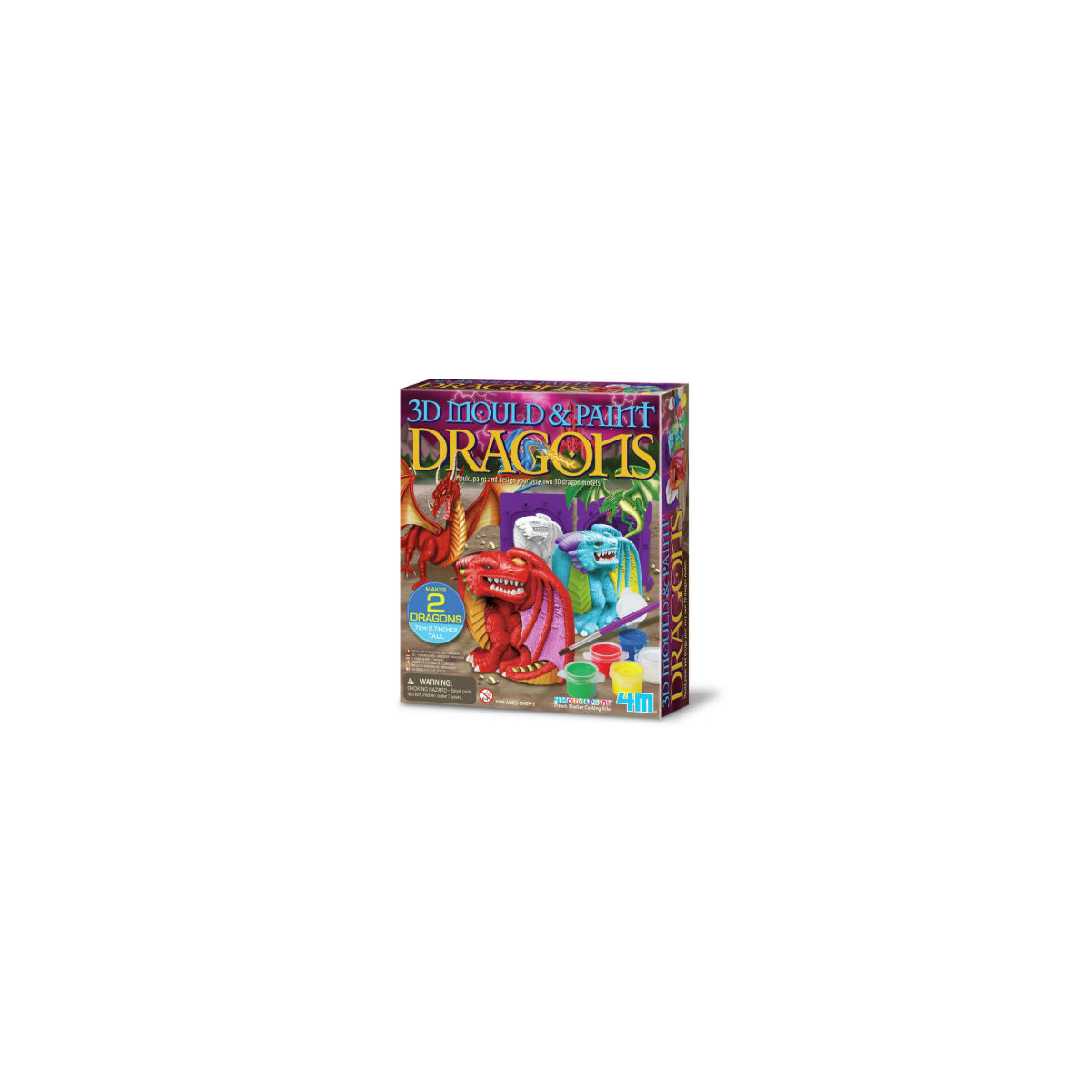 Kit artístico infantil para moldear y pintar dragones en 3D. Incluye moldes, yeso y pinturas. Ideal desde 5 años para desarrollar la creatividad.