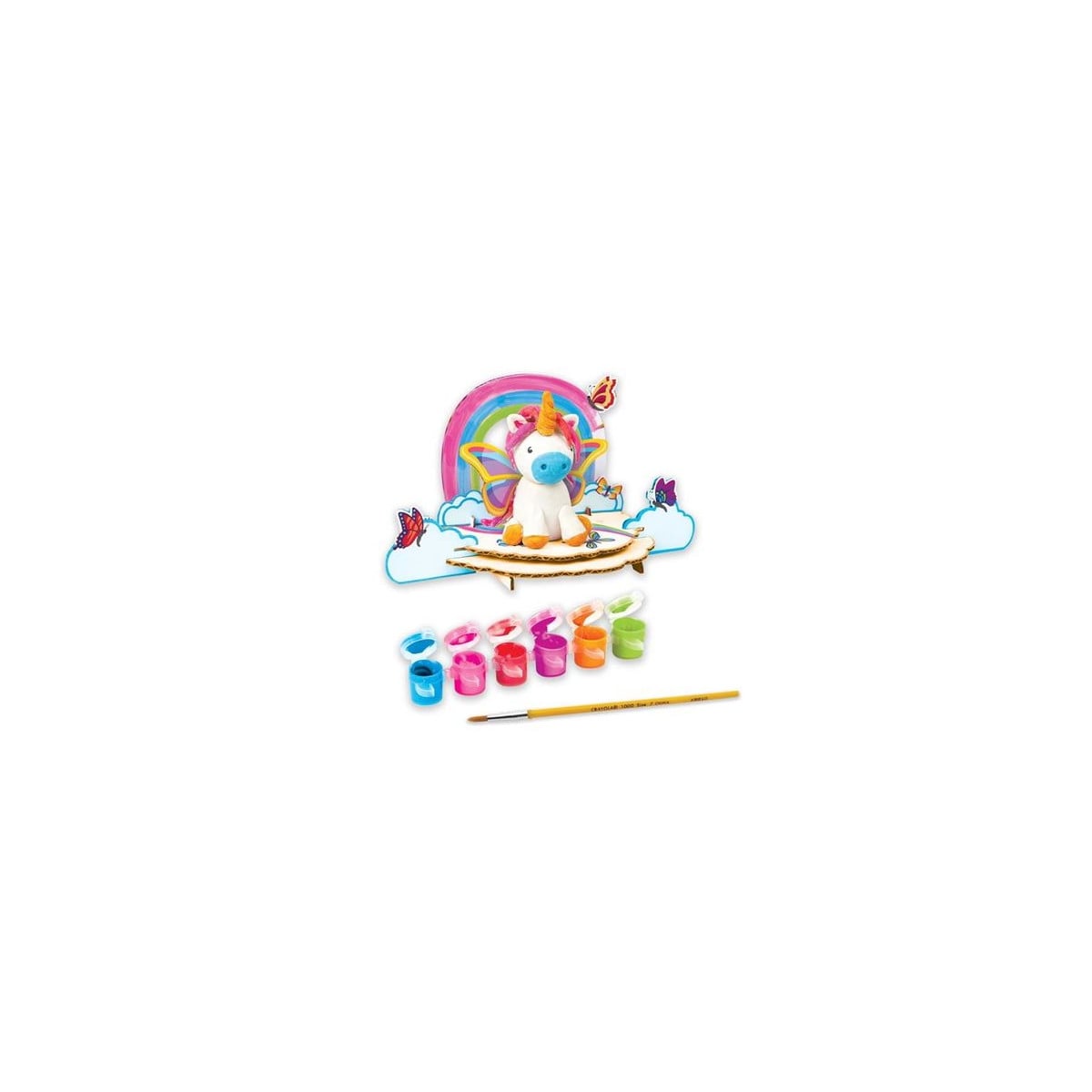 Incluye pinturas acrílicas en colores vibrantes y pinceles para que los pequeños artistas añadan detalles mágicos al unicornio. Desde la melena hasta los cascos, ¡todo está en sus manos!