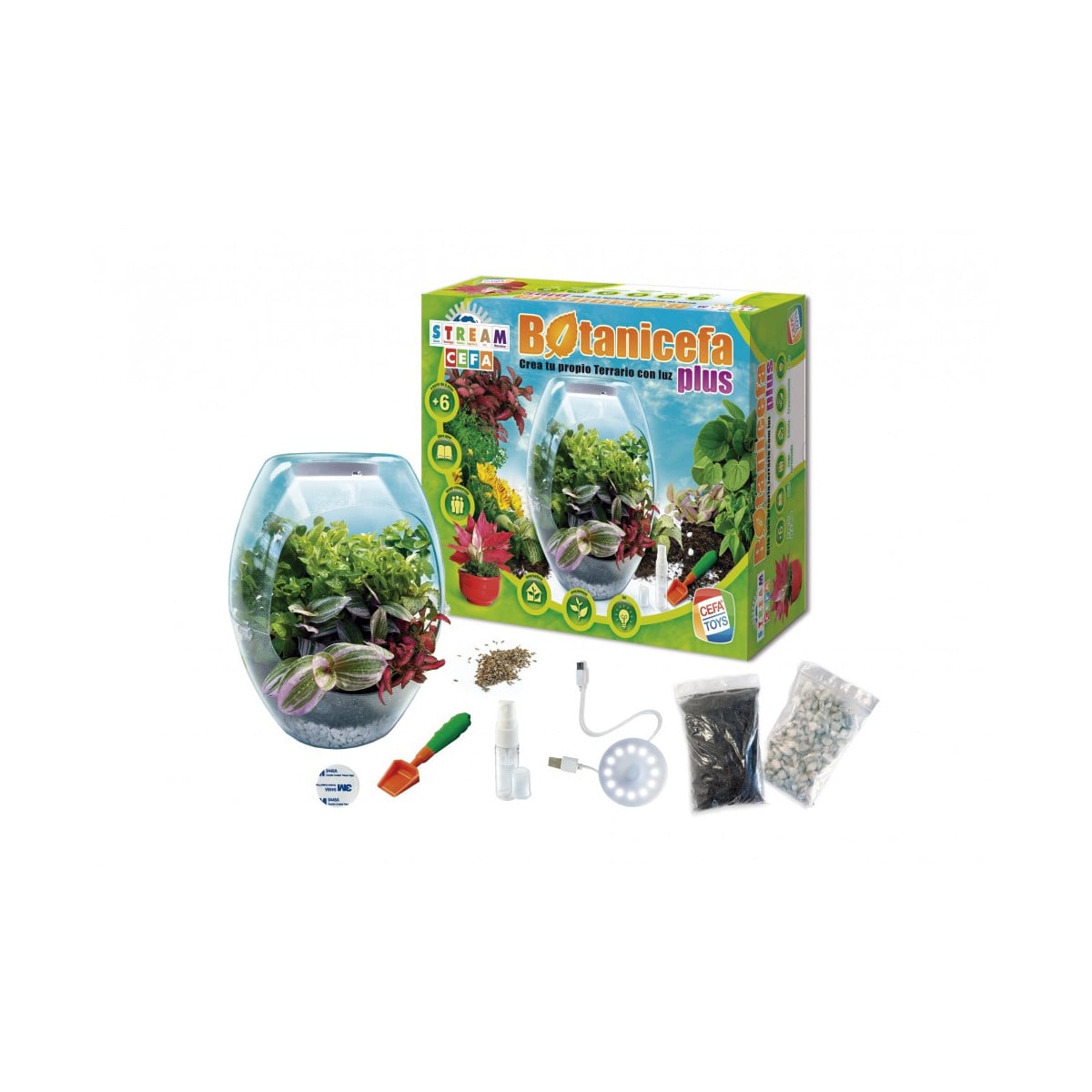Con Botanicefa Plus podrás crear tu propio terrario con luz y observar el crecimiento de las plantas. Prepara el sustrato, siembra las semillas que incluye el kit y deja que la naturaleza te sorprenda.