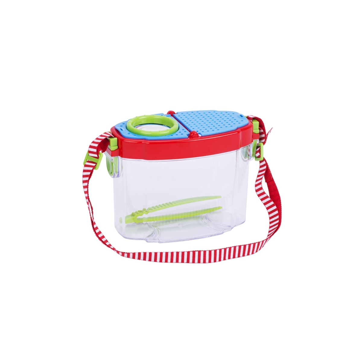 Incluye unas pinzas para manipular cuidadosamente los elementos que se deseen introducir en el recipiente. La tapa se abre fácilmente y tiene ventilación para que los bichitos estén a salvo mientras se observan. Además, cuenta con una correa ajustable para llevar colgada, facilitando su transporte en paseos, excursiones o visitas al jardín.