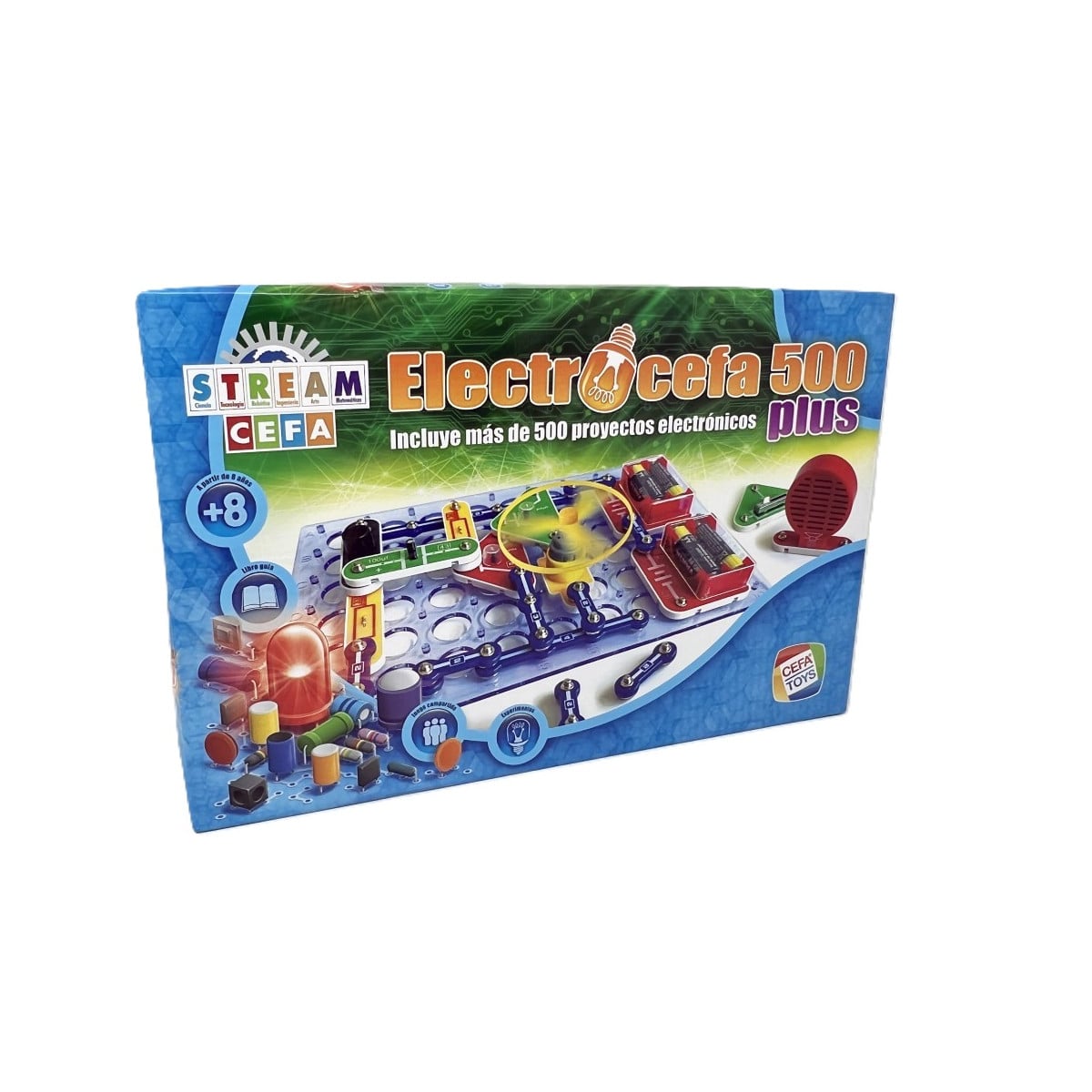 Descubre cómo funciona el mundo de la electrónica con uno de los kits educativos más completos del mercado. El Electrocefa 500 Plus permite a niñas y niños a partir de 8 años montar hasta 500 circuitos electrónicos reales de forma segura, divertida y didáctica. Es un juego ideal para aprender los fundamentos básicos de la electricidad, mientras desarrollan su pensamiento lógico, la concentración y su curiosidad científica.