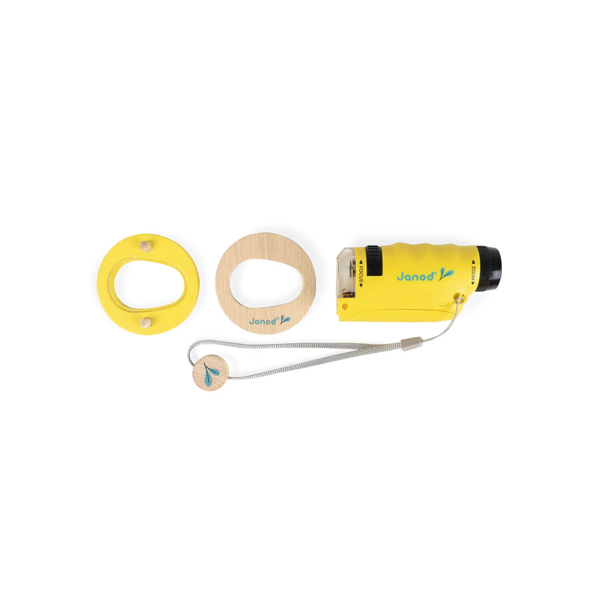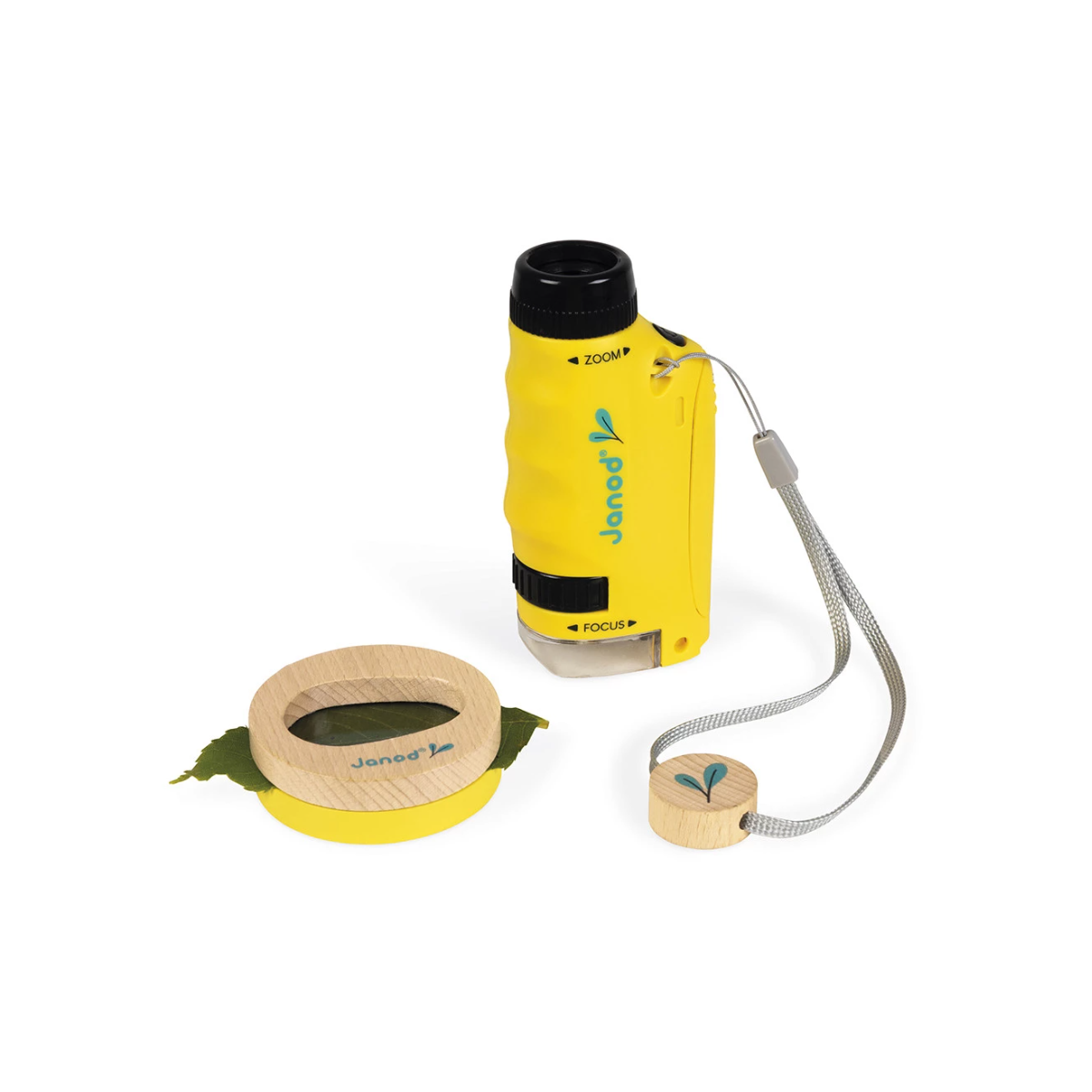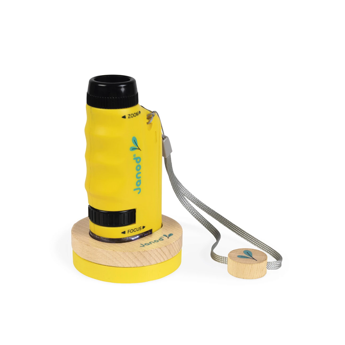 Microscopio de bolsillo Janod con aumento 50x-250x. Compacto y fácil de usar, ideal para explorar y aprender ciencia desde los 3 años.
