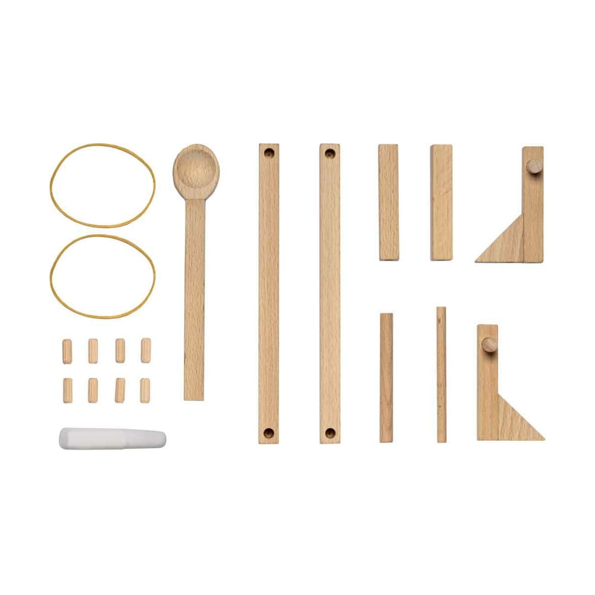- Incluye: 1 catapulta de madera para construir de 17 piezas, 1 cola para madera, 2 gomas e instrucciones de montaje de Nature Zoom