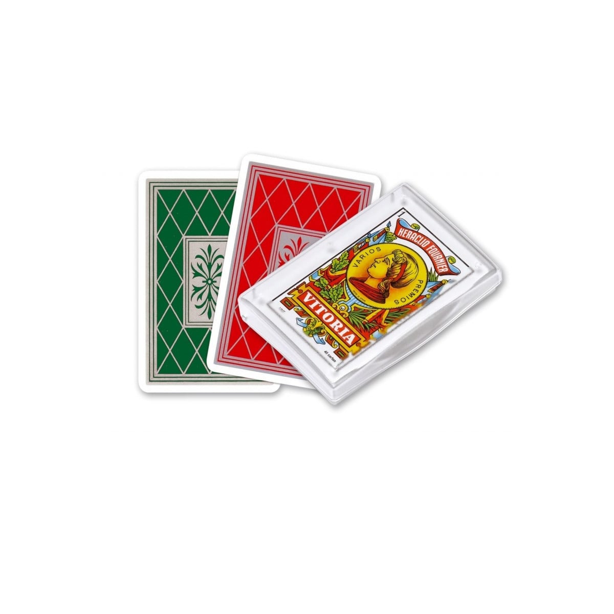 - 40 cartas de 95x 66 mm en caja de plástico transparente.