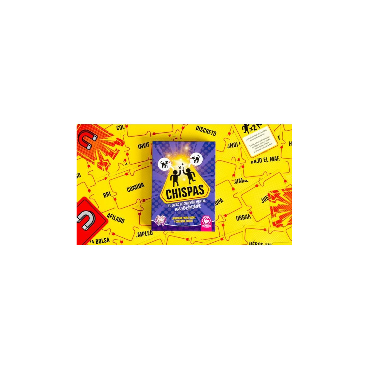 ¿Alguna vez has sentido una conexión instantánea de ideas con alguien? Con Chispas, ese es exactamente el reto. Este divertido juego de mesa propone a las y los jugadores pensar al mismo tiempo y encontrar la palabra que mejor se conecta con las pistas que hay sobre la mesa. Solo con una buena sincronización mental y complicidad podrás lograrlo.
