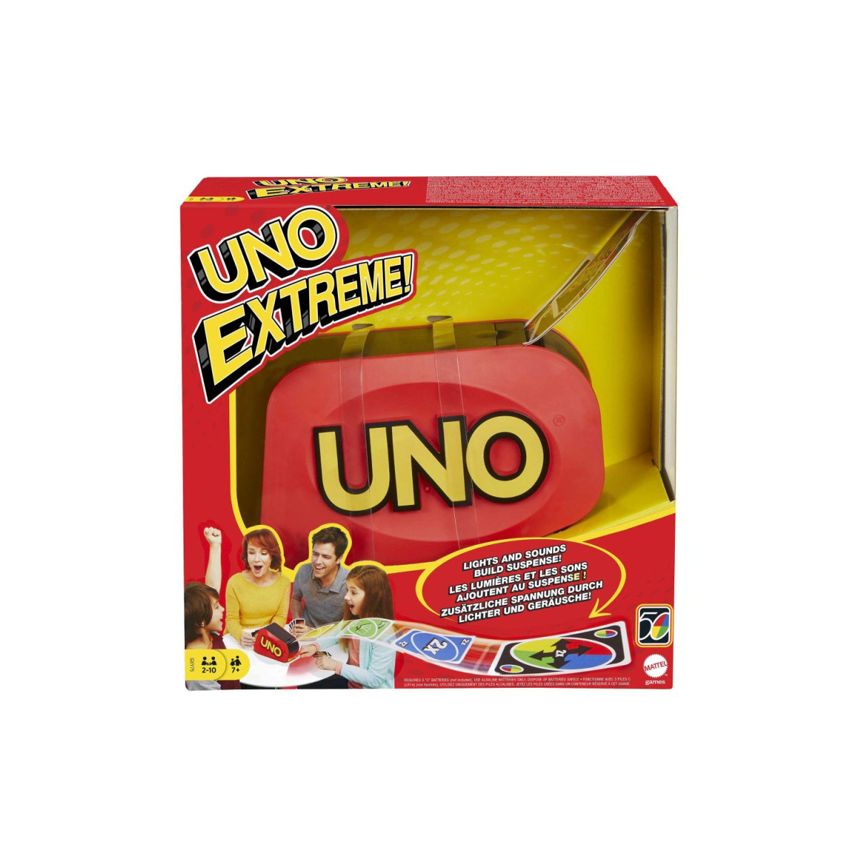 Disfruta del UNO Extreme Refresh, el clásico juego llevado a otro nivel con lanzador electrónico, luces y sonidos para partidas llenas de emoción.