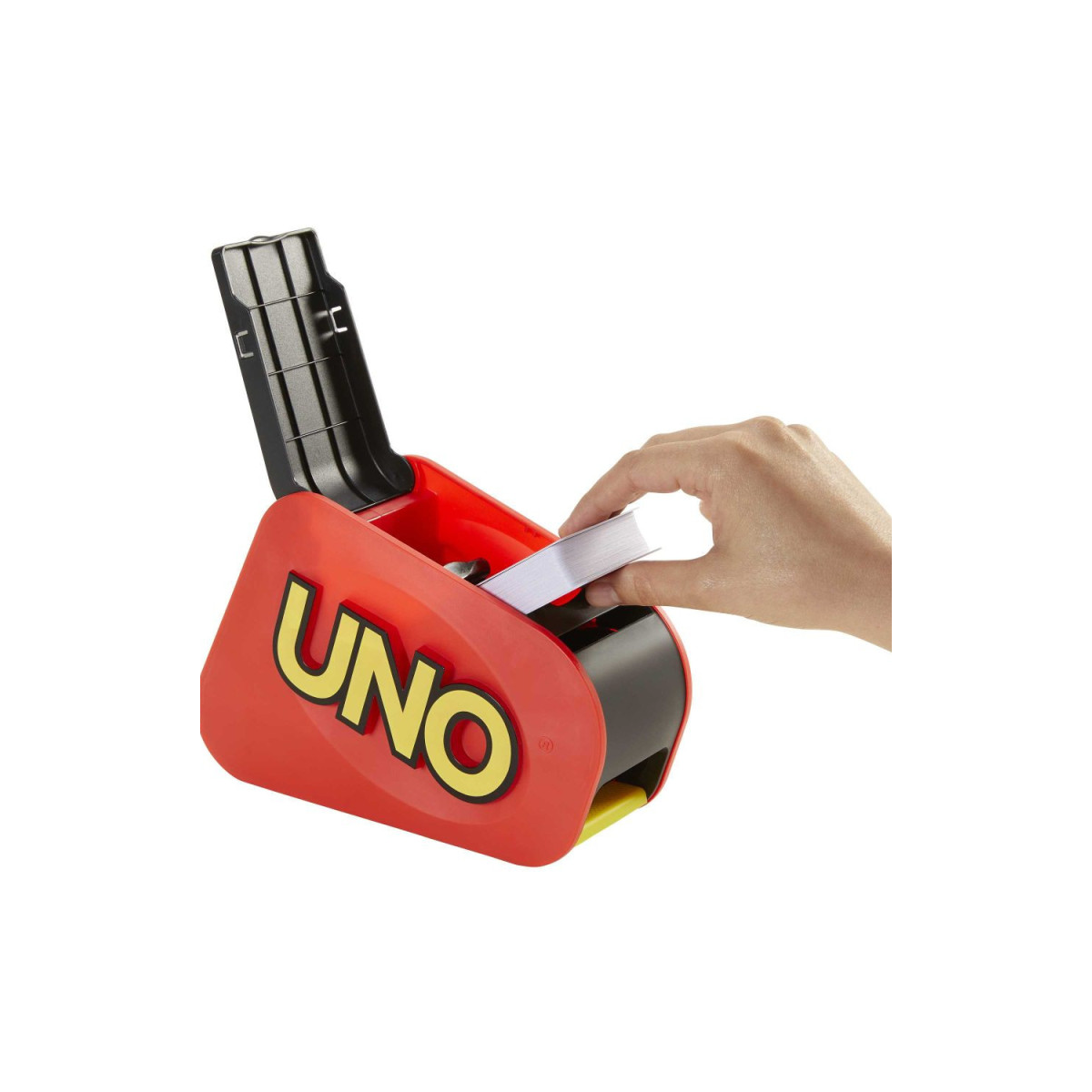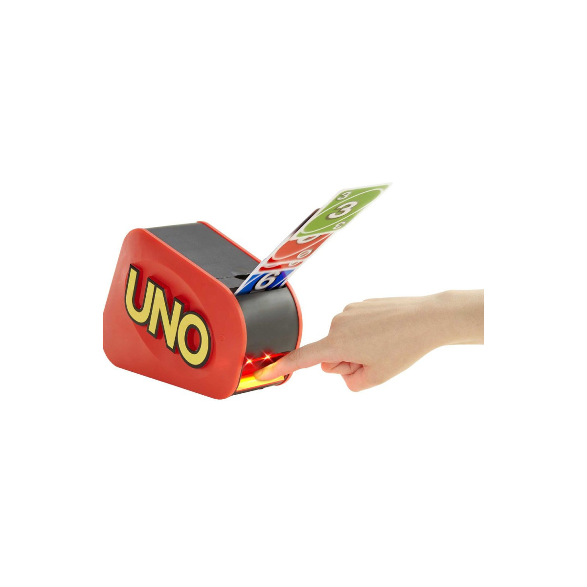 El UNO Extreme Refresh lleva la diversión del clásico UNO a otro nivel con su lanzador electrónico de cartas. Cada partida está llena de sorpresas, ya que nunca sabes cuántas cartas saldrán disparadas al pulsar el botón. Con luces y sonidos que aumentan la emoción, este juego garantiza risas y tensión en cada turno.