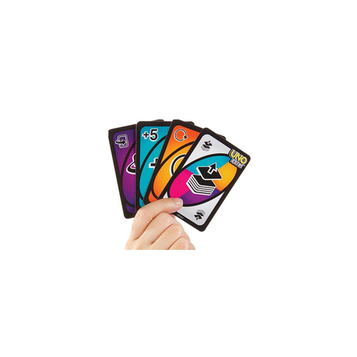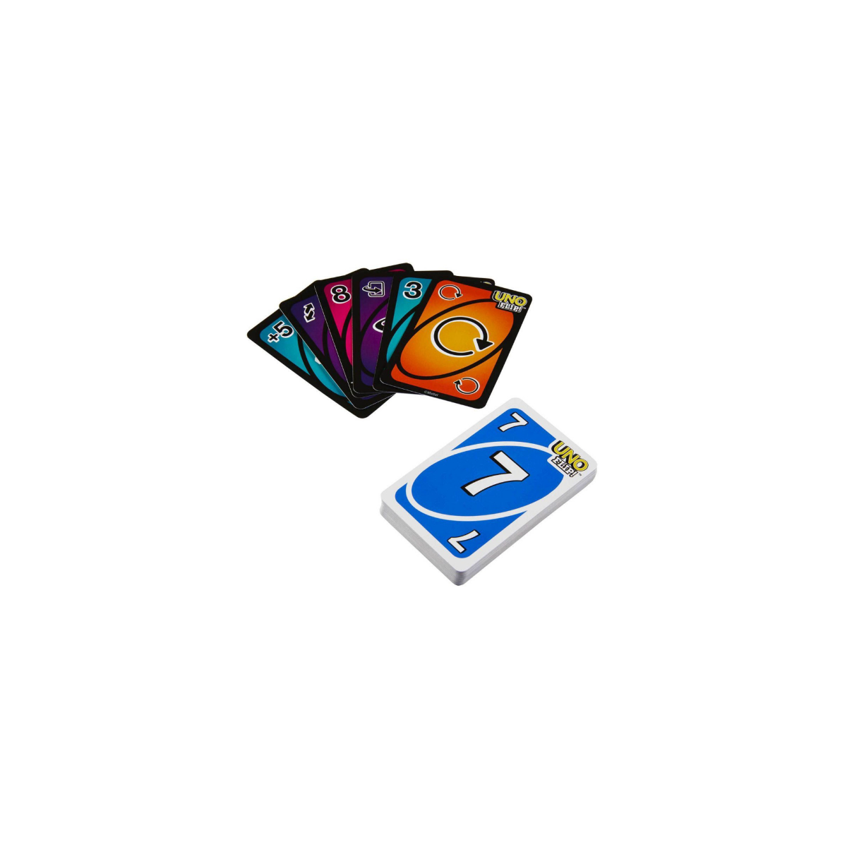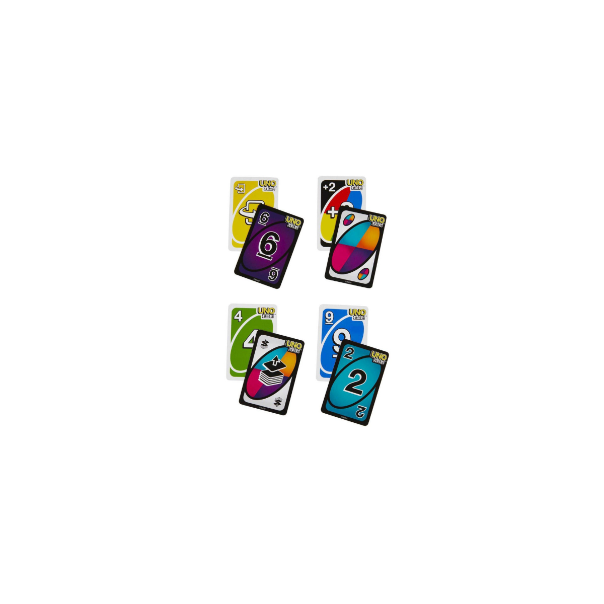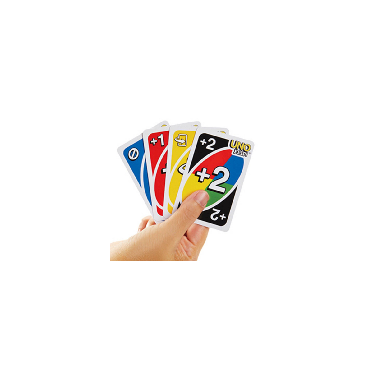 - Incluye: 1 juego de Uno Flip con 112 cartas, y diferencia del clásico juego del Uno por ser 1 baraja a doble cara y con 1 carta especial Flip (quien la posee elige lado bueno o lado malo de la baraja para jugar) e instrucciones de juego