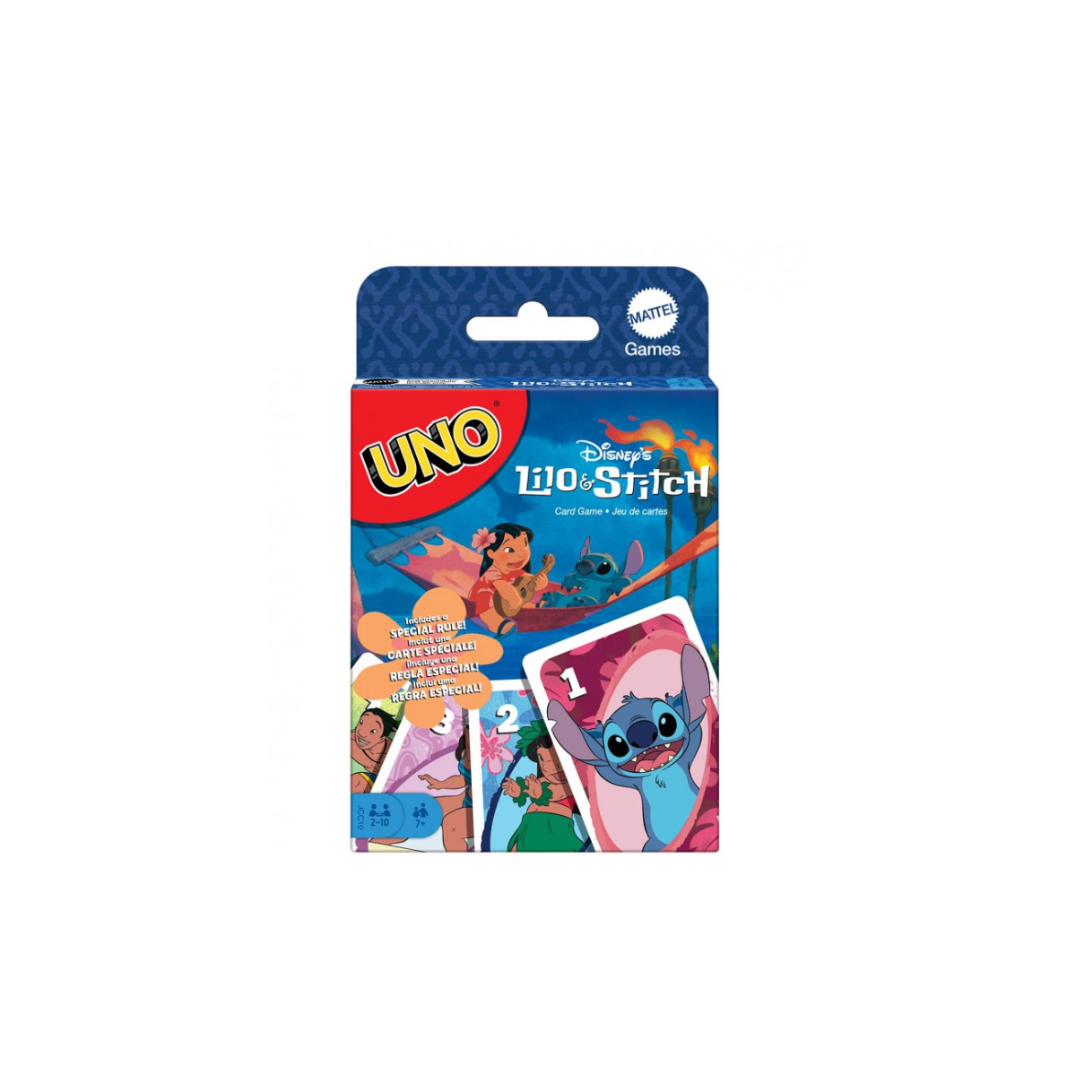 ¡Prepárate para una partida de UNO como ninguna otra con Stitch! Esta edición especial Uno Lilo Y Stitch de Mattel añade un toque hawaiano lleno de color y ternura a partir del momento en que abres la caja. Las cartas presentan ilustraciones vibrantes de los personajes más queridos, y se mantiene la mecánica clásica: emparejar colores y números para deshacerse de la mano.