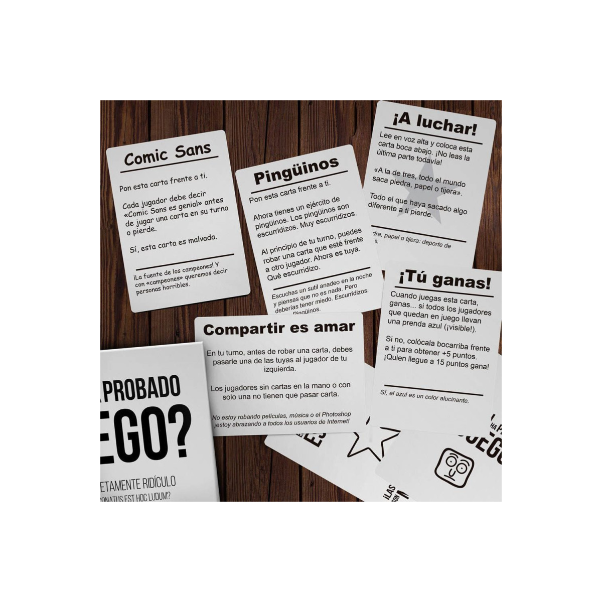 - Incluye 100 cartas con retos, reglas absurdas y situaciones caóticas.