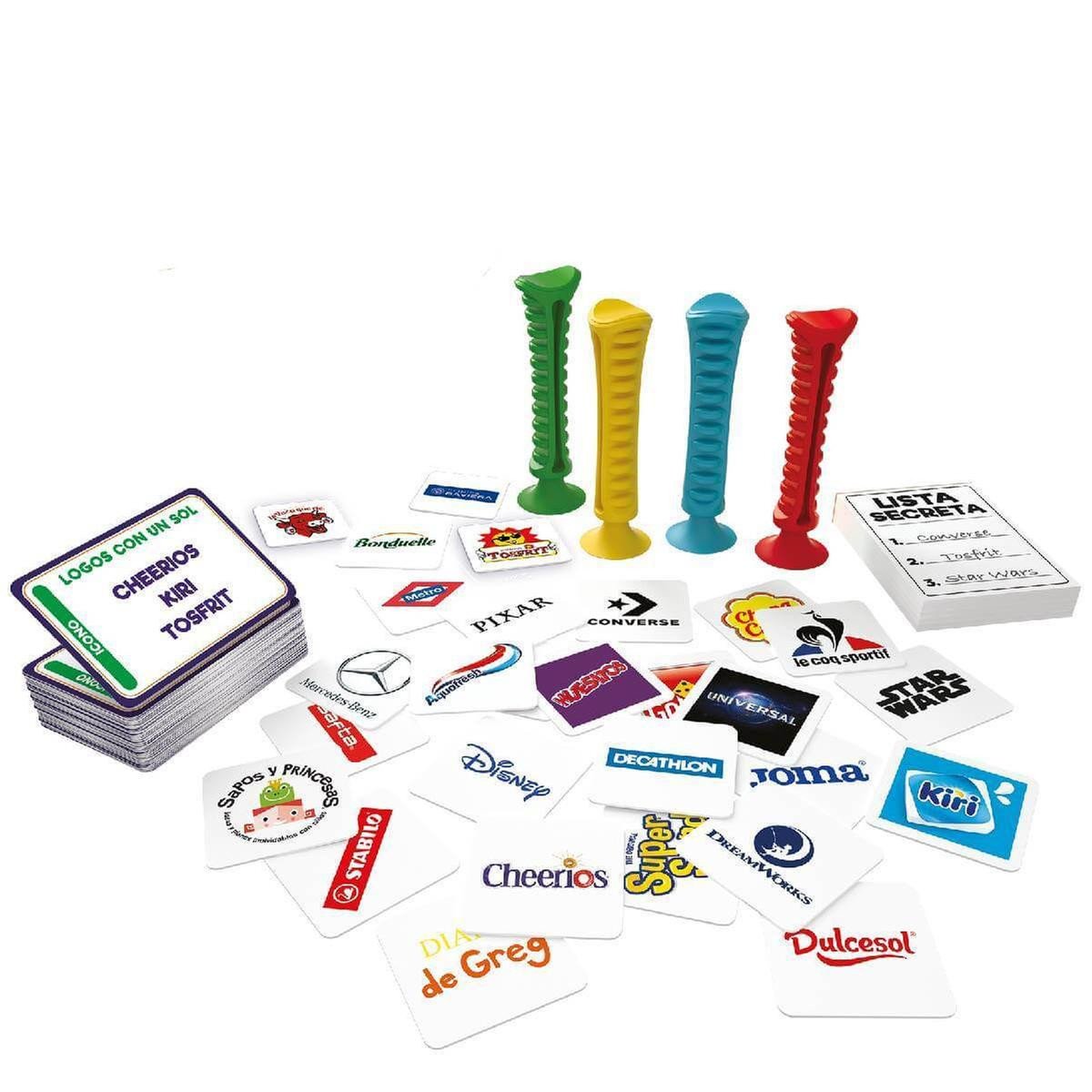 - Incluye: 72 logos, 2 mangos con ventosa, 60 cartas de desafío a doble cara, 1 libreta "Lista secreta" e instrucciones
