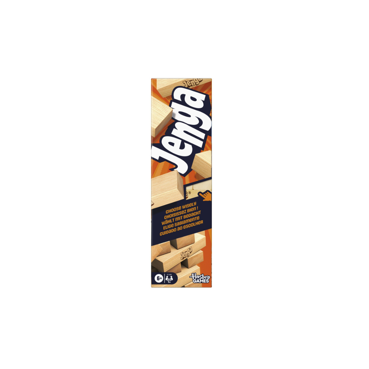 Jenga de Hasbro: el clásico juego de habilidad con bloques de madera. Diversión asegurada para toda la familia a partir de 6 años. ¡No lo dejes caer!