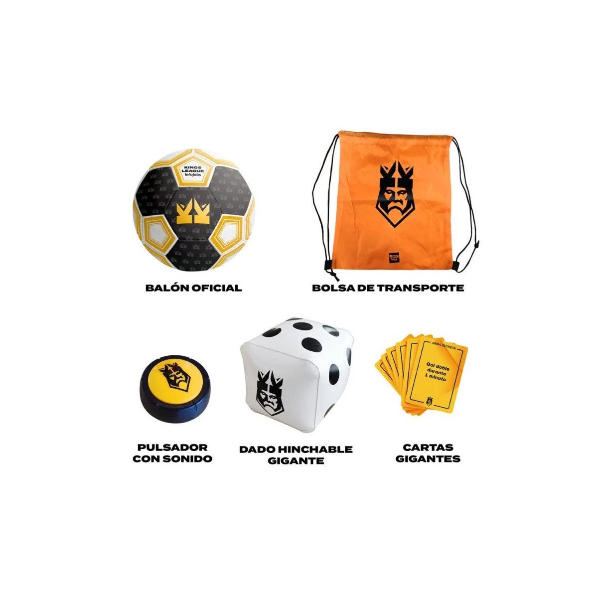 Incluye balón, mochila, dado gigante hinchable, cartas y pulsador con sonidos.