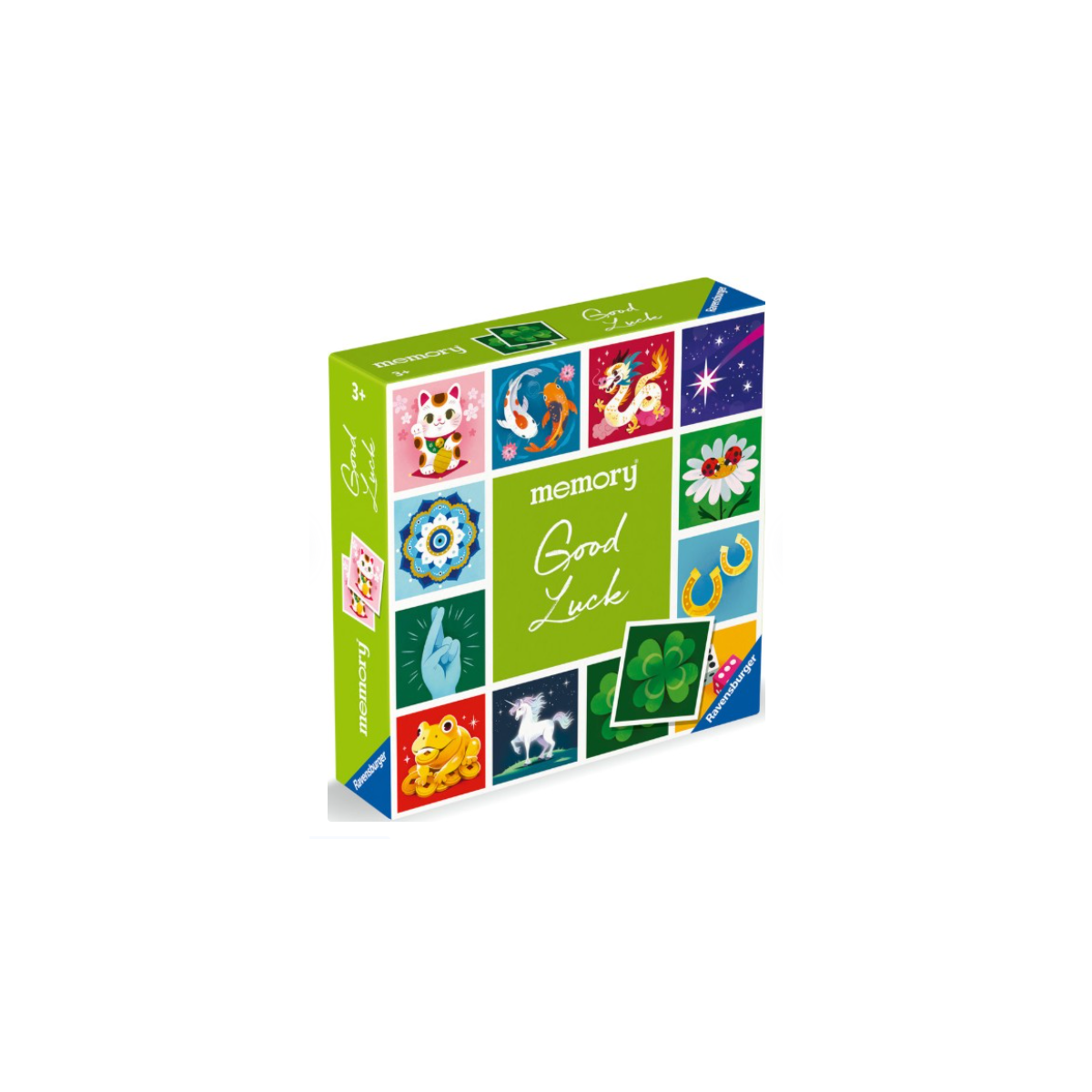 El Mini Memory Buena Suerte de Ravensburger es una versión especial del clásico juego de mesa de memoria, decorada con adorables ilustraciones de la suerte: tréboles de cuatro hojas, herraduras, gatitos, arcoíris y muchos más símbolos entrañables que encantarán a peques y mayores. Recomendado a partir de 3 años, es ideal para estimular la memoria visual, la concentración y el reconocimiento de imágenes de forma divertida.