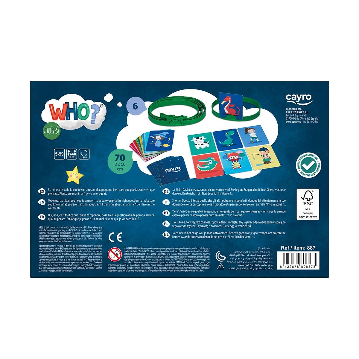 Advertencias: No apto para niños menores de 36 meses. Presencia de pequeños elementos susceptibles de ser ingeridos. Peligro de asfixia. Utilizar bajo la supervisión de un adulto