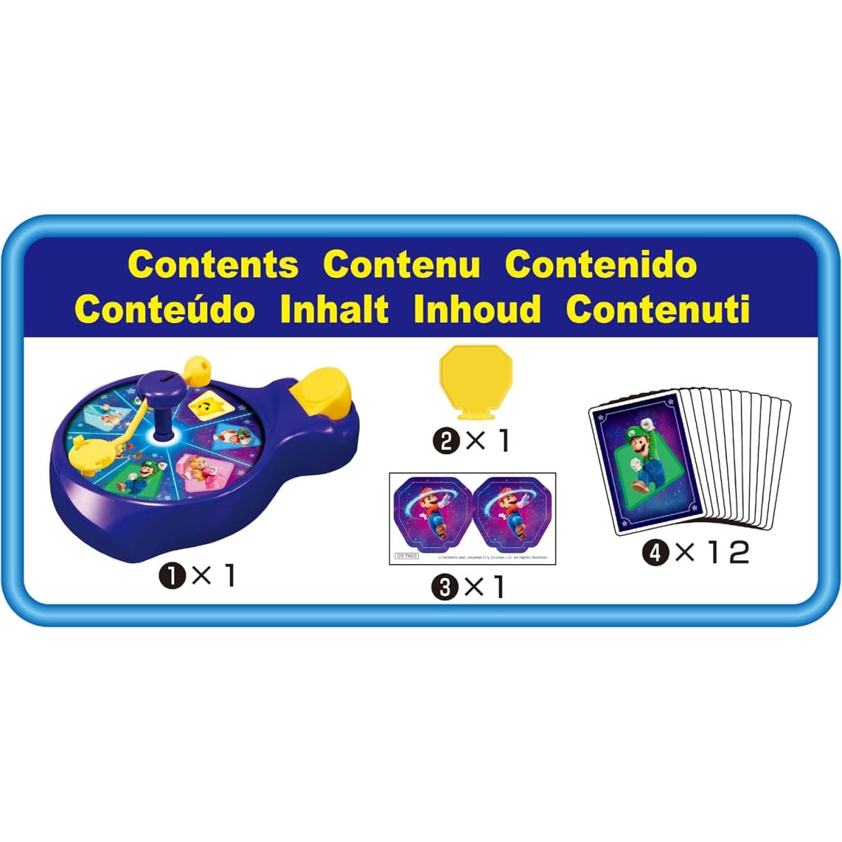De la marca Super Mario Bros, este juego destaca por su mecánica ágil: se roba una carta, se acciona la ruleta y hay que estar muy atento para identificar si aparece el personaje correspondiente. Quien consiga más aciertos será el ganador, lo que genera partidas rápidas, emocionantes y llenas de interacción entre los jugadores.