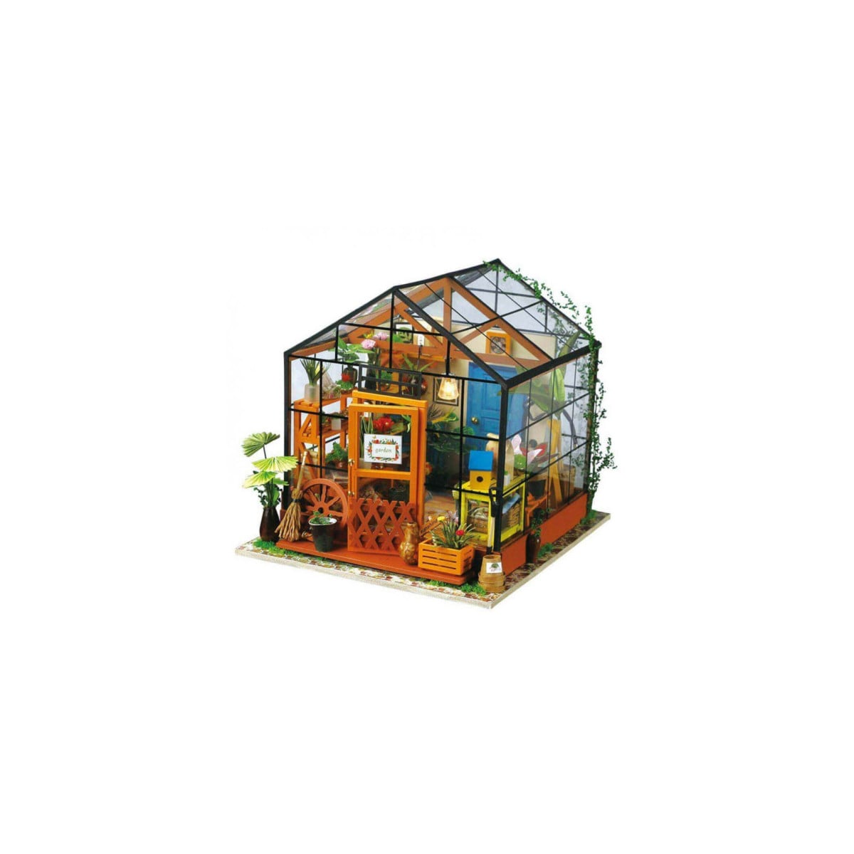 - Maqueta para montar una casa invernadero con flores y muebles en miniatura.