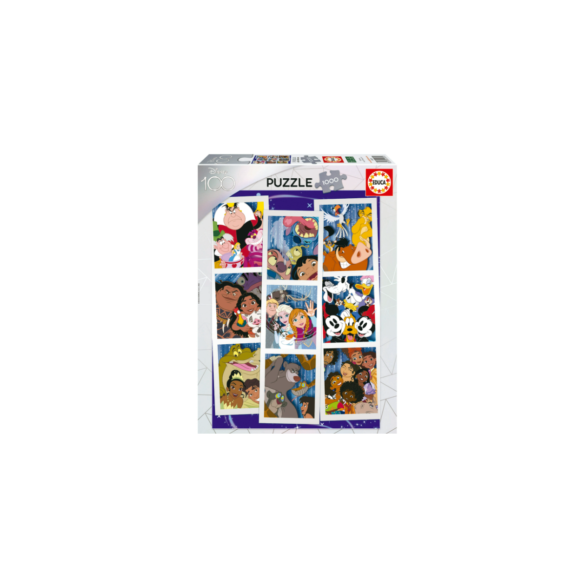Descubre en cada viñeta los personajes de las películas Disney 100 y disfruta en el proceso montado el Puzzle con Collages de Educa.