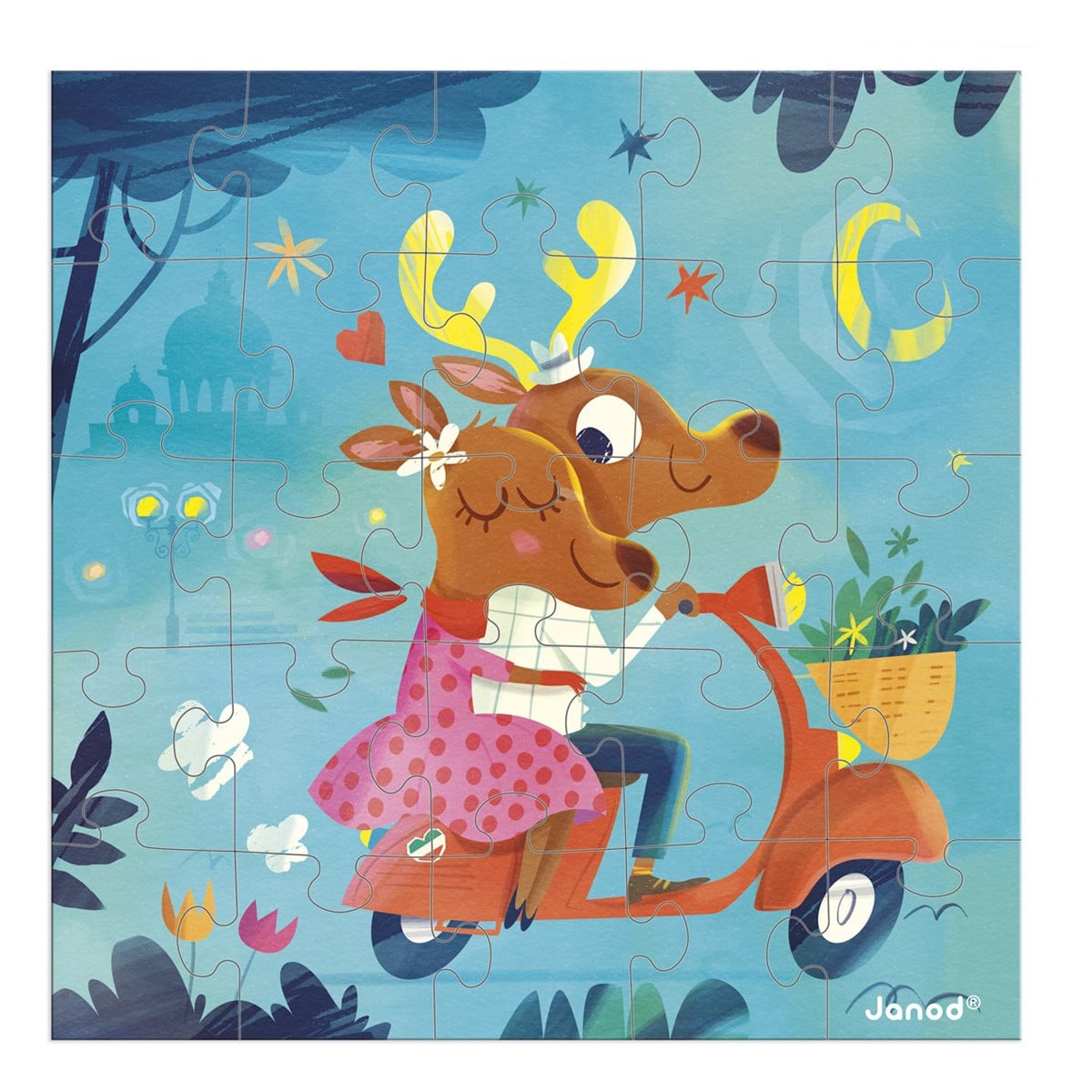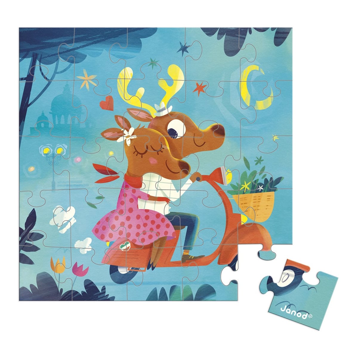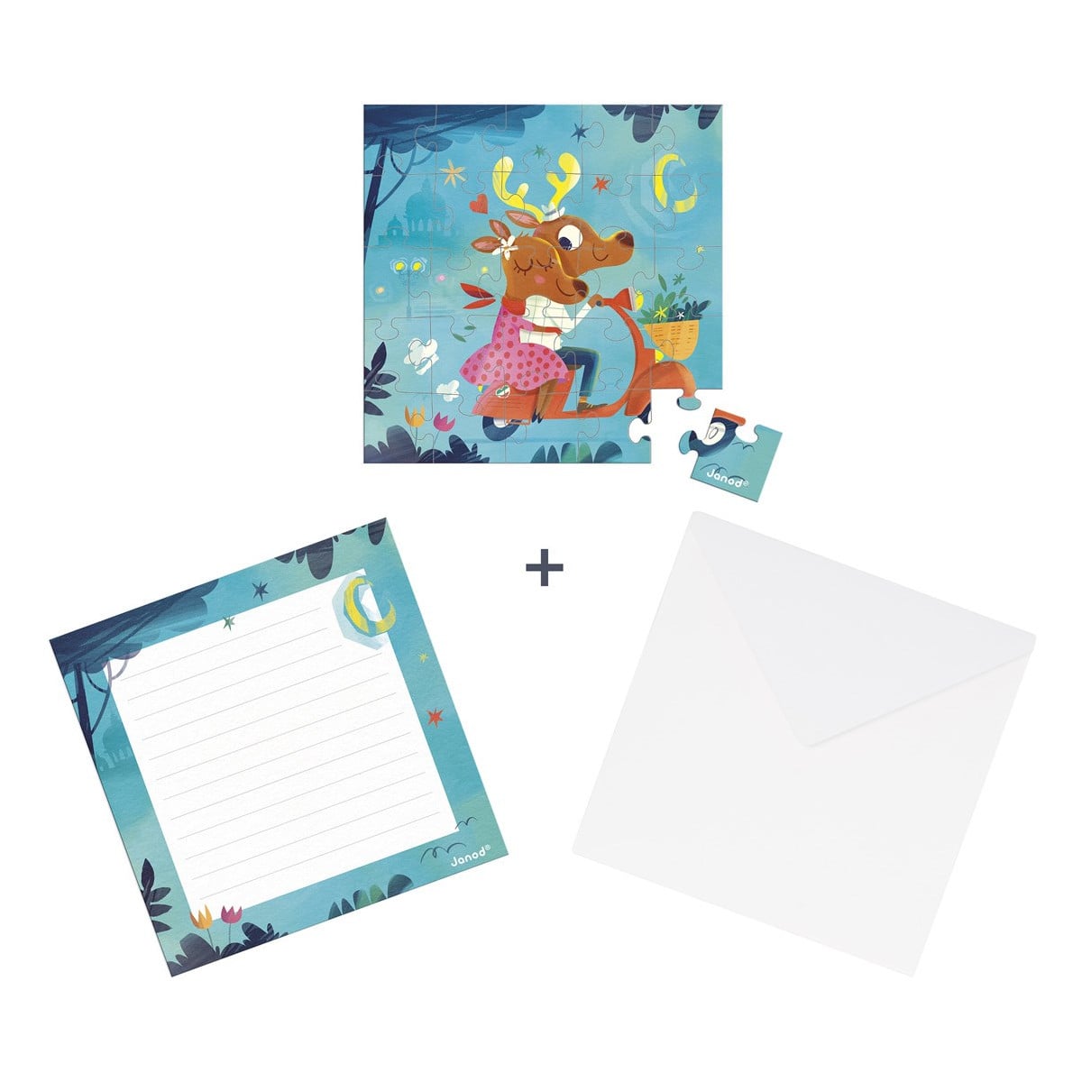 Sorprende con una idea diferente gracias a esta tarjeta puzle Amor Dolce Vita, una forma especial de transmitir un mensaje que va mucho más allá de una simple felicitación. Los peques tendrán que montar sus 25 piezas para descubrir una escena romántica y encantadora, donde dos ciervos disfrutan de un paseo bajo las estrellas en un ambiente lleno de magia y ternura.