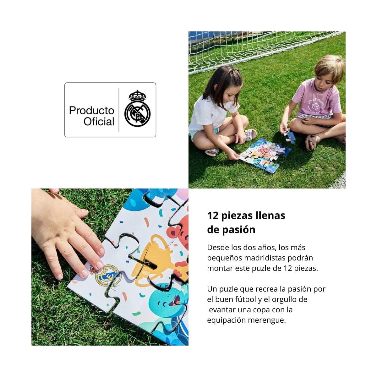 El puzle infantil Real Madrid de 12 piezas es perfecto para que los más pequeños comiencen a descubrir el mundo de los rompecabezas mientras disfrutan del fútbol. Con ilustraciones divertidas inspiradas en el universo del Real Madrid, este puzle invita a niños y niñas a vivir sus primeras aventuras futboleras a través del juego.