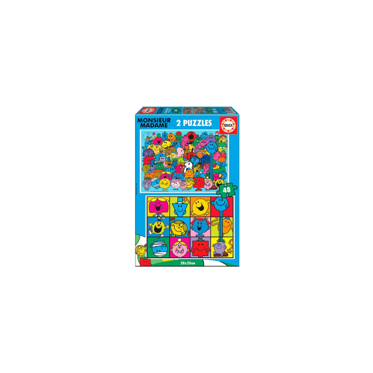 Descubre el Puzzle Monsieur Madame de 2x48 piezas de Educa: un juego educativo que impulsa la creatividad, la coordinación y el momento.