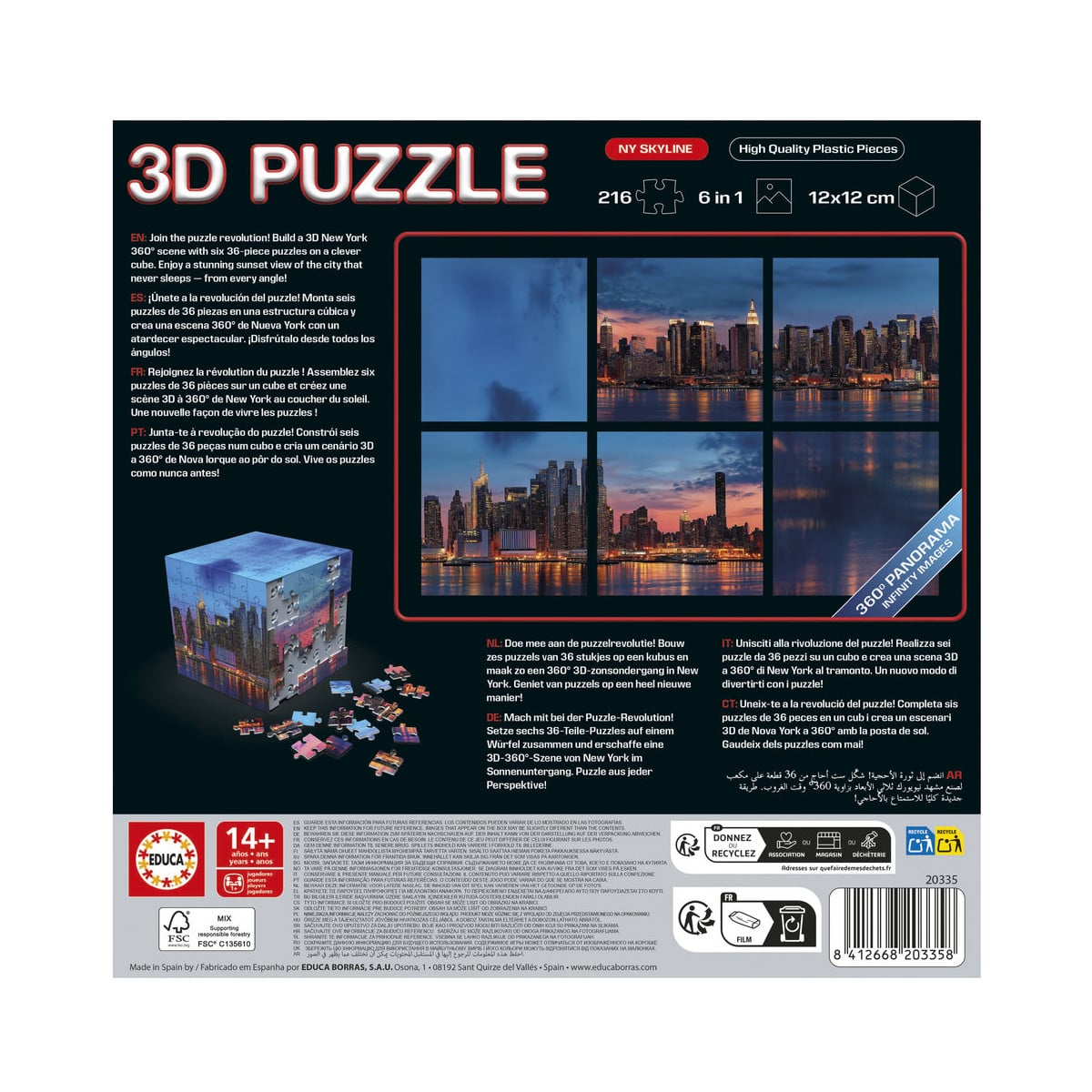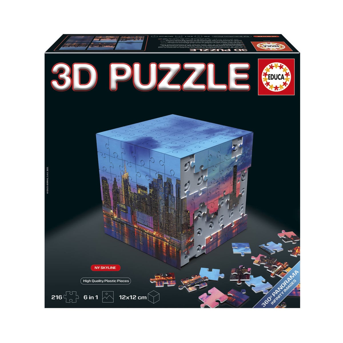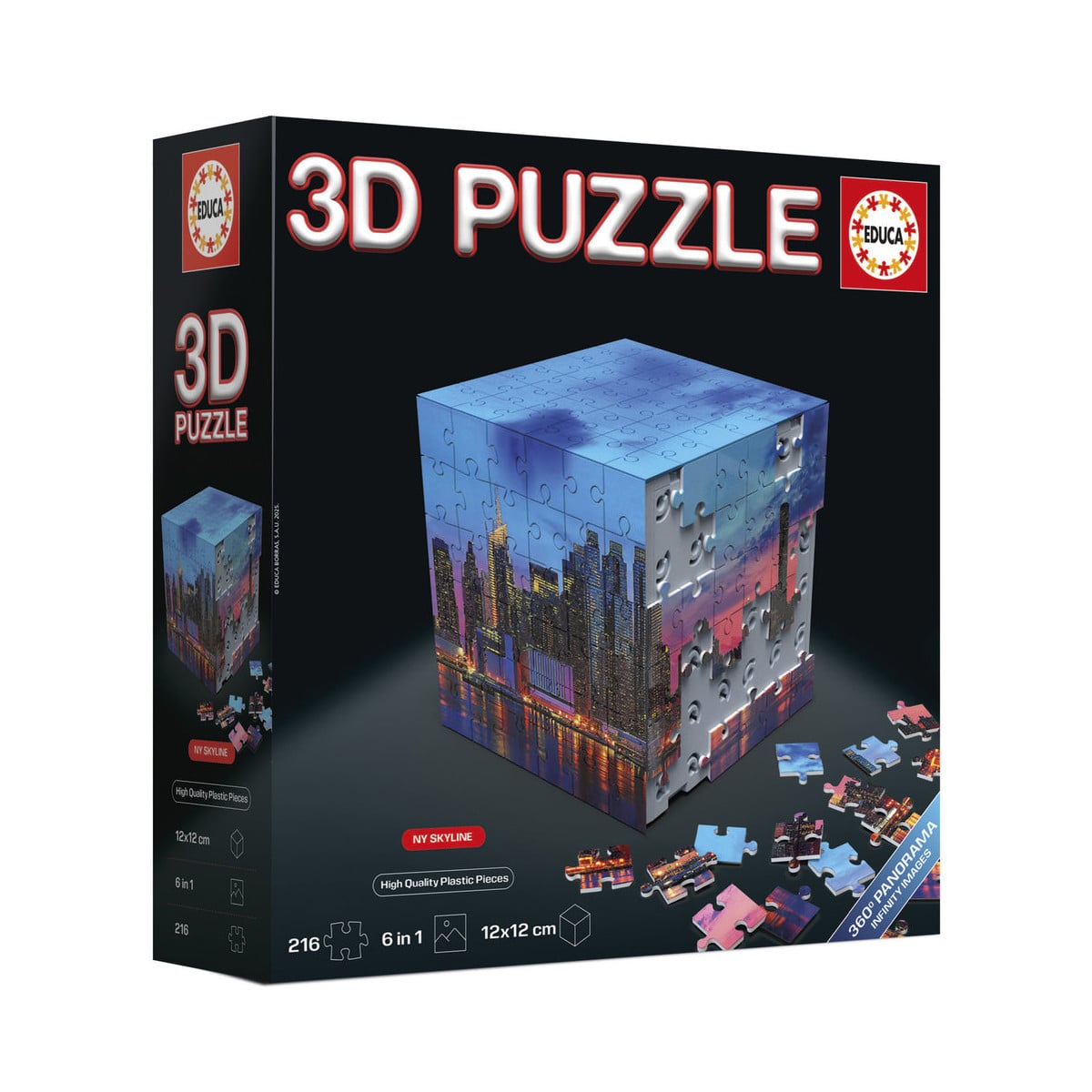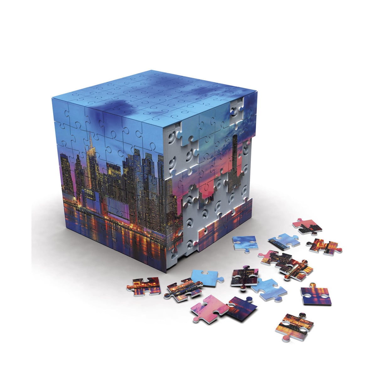 Puzzle 3D NY Panorama de 216 piezas. Construye un cubo con 6 imágenes del skyline de Nueva York. Original, decorativo y divertido.
