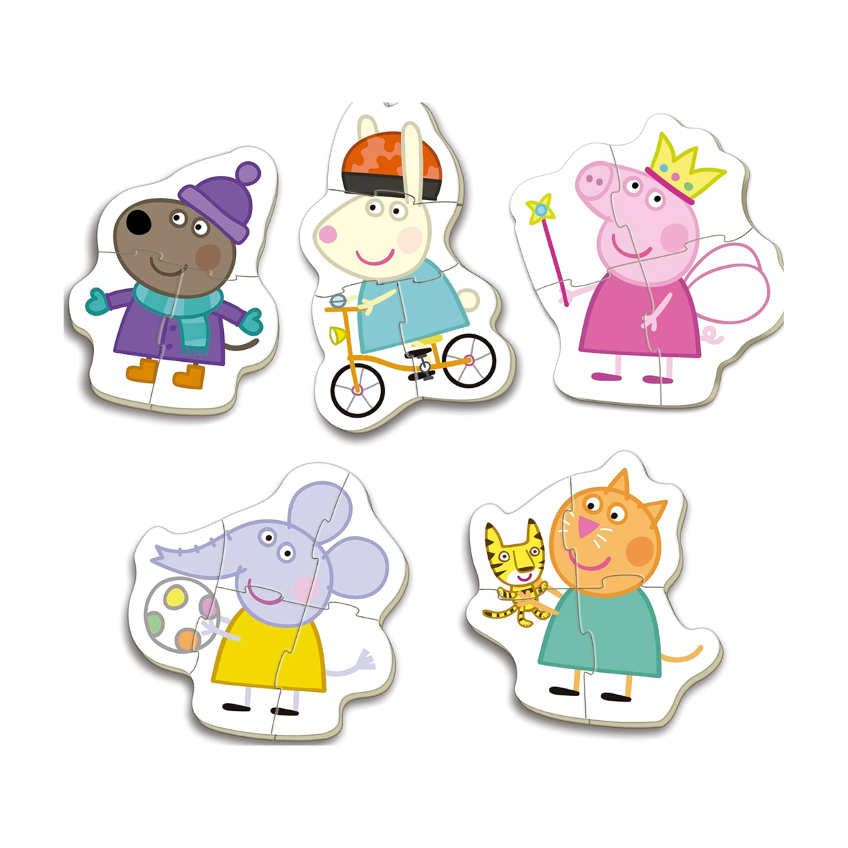 - Diseño: Set de puzzles progresivos de Peppa Pig con ilustraciones coloridas de sus personajes, pensados para que los más pequeños disfruten mientras avanzan en dificultad.