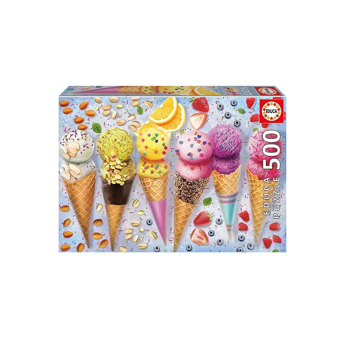 Puzzle Helados 500 PCS Educa. Imagen veraniega con helados, 500 piezas y encaje perfecto. Tamaño 48 x 34 cm. Ideal para edades desde 10 años.